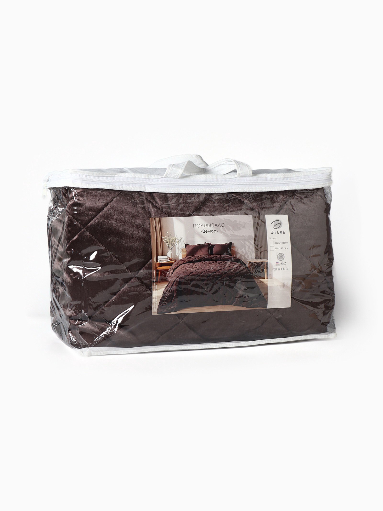 Покрывало 220x240+-5 см, велюр, коричневое, 220x240 см., Этель, Россия