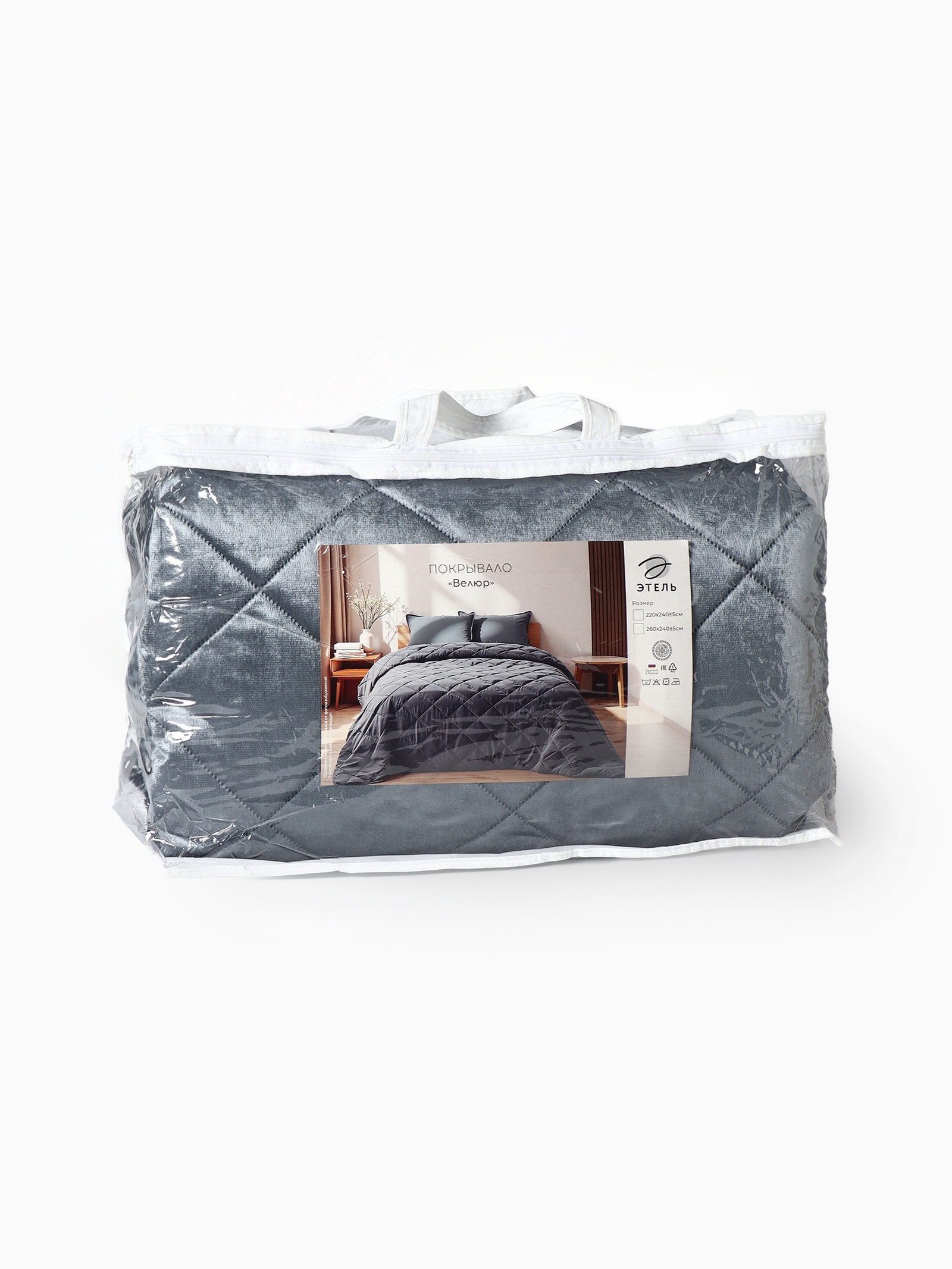 Покрывало 220x240+-5 см, велюр, серо-голубое, 220x240 см., Этель, Россия