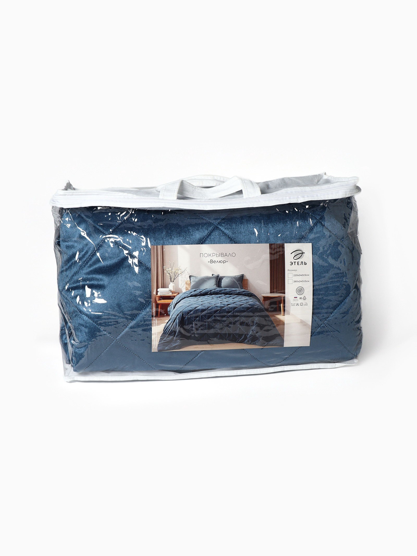 Покрывало 260x240+-5 см, велюр, синее, 260x240 см., Этель, Россия