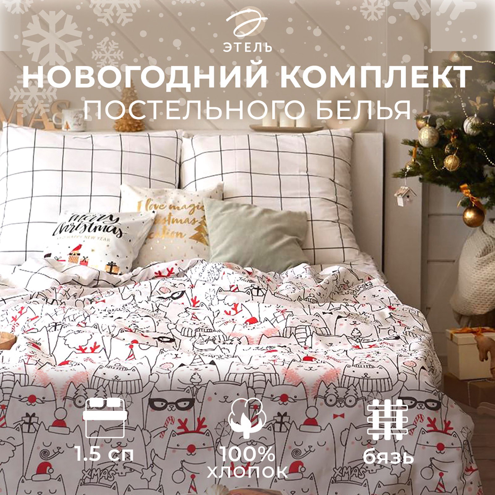 Постельное бельё 1.5-спальное Xmas cat, бязь, Этель, Россия