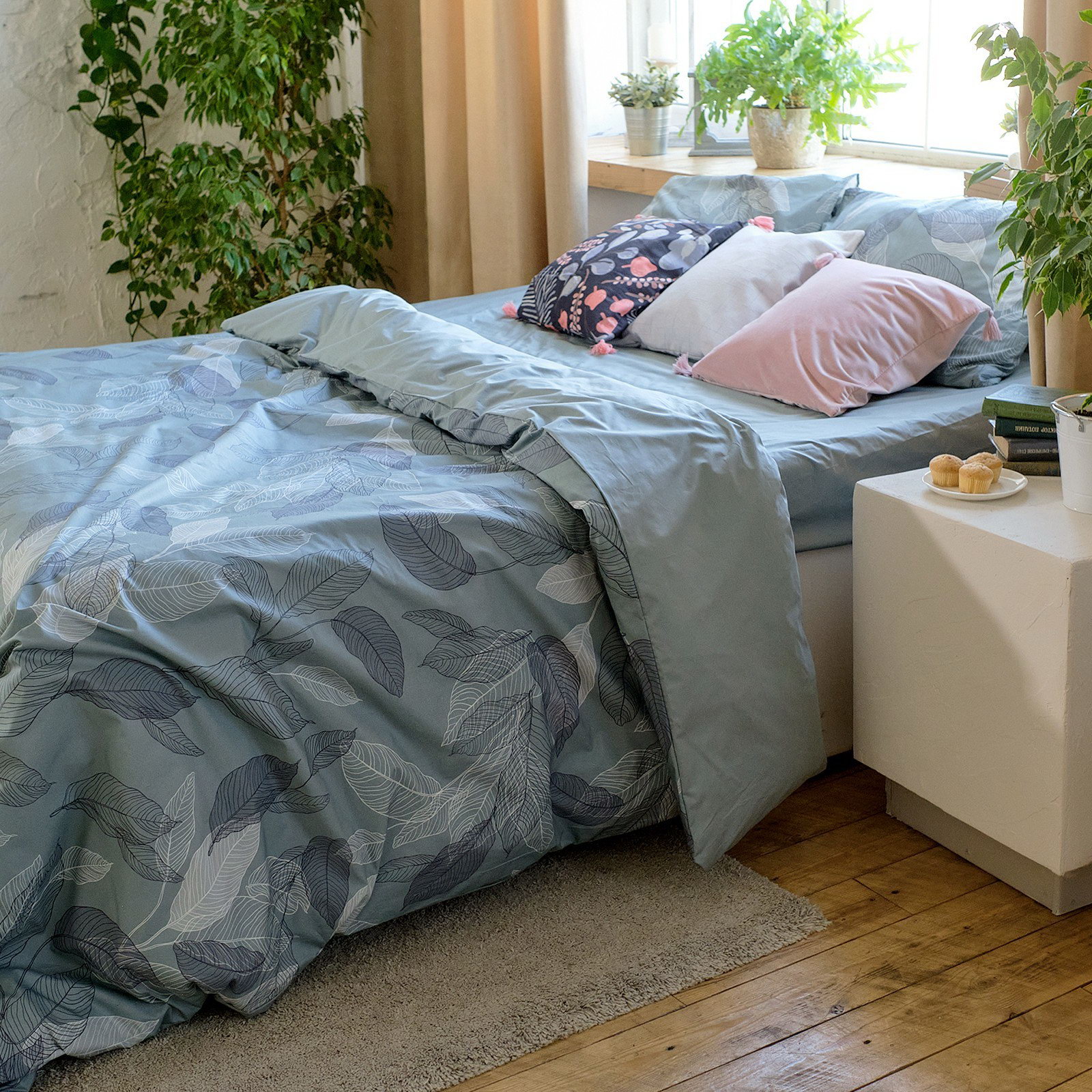 Постельное бельё Евро Mint leaves, пододеяльник 200х217 см, наволочки 50х70 см 2 шт, 100% хлопок, Этель, Россия