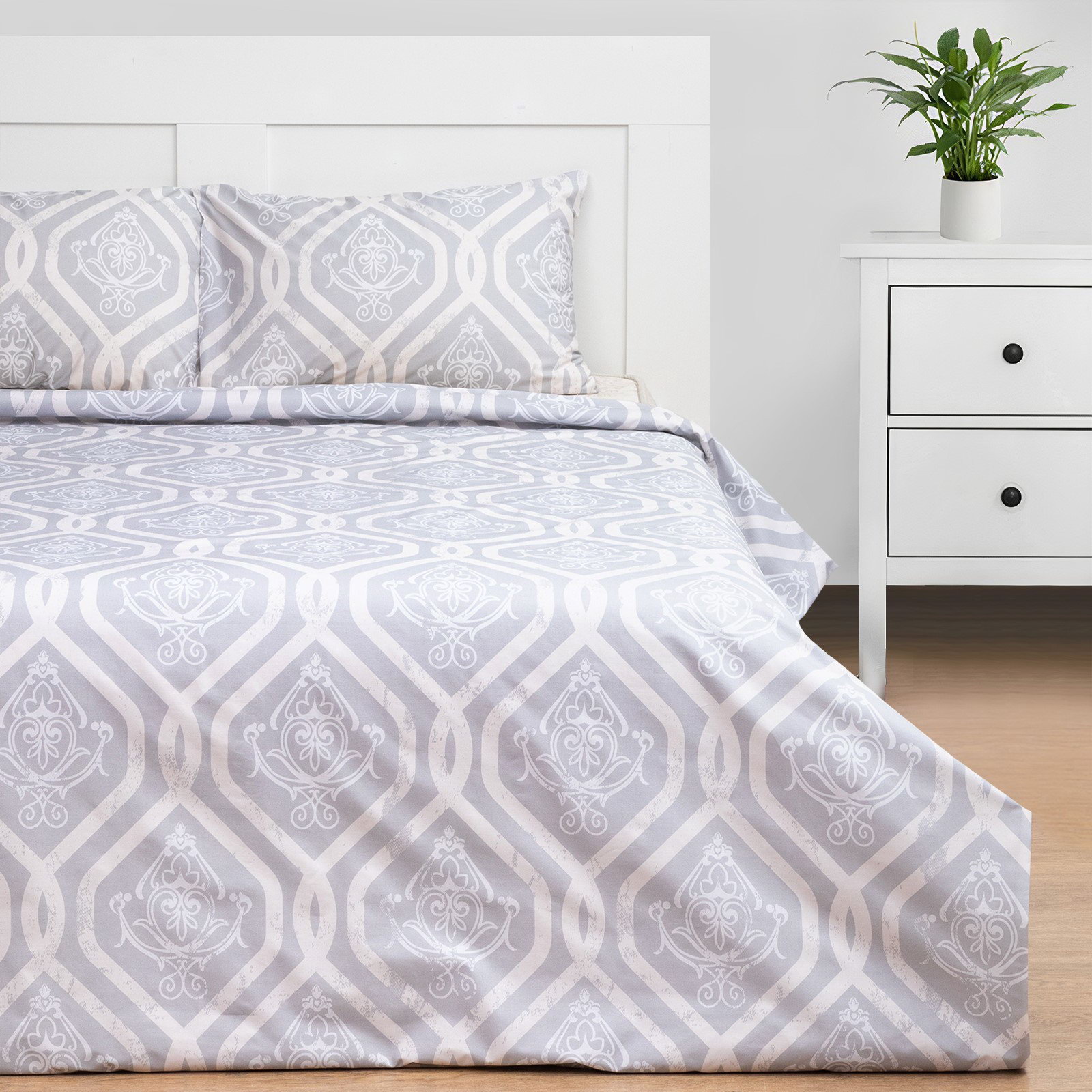 Комплектация: 2 наволочки, Пододеяльник Сезон: Весна, Зима, Лето, Осень Рекомендации по уходу: Барабанная сушка при низкой температуре, Глажка при 150 ℃, Не отбеливать, Стирка при 40 ℃ Размер упаковки: 30 x 6 x 30 см. Размер упаковки: 30 x 6 x 30 см. tnved: 6302100000 Вид застёжки наволочки: Клапан Размер наволочки, см: 50 x 70 Назначение: Взрослым Фактура материала: Гладкий Количество наволочек: 2 Состав ткани: Хлопок Декоративные элементы: Без элементов Цвет: Серый Кол-во пододеяльников в комплекте: 1 Ткань: Перкаль Вид упаковки: PVC-пакет Размер: 1.5-спальное см Размер пододеяльника, см: 143 x 215 Плотность, г/?2: 114 На резинке: Нет Температурное ограничение: Нет Простыня в комплекте: Нет Тематика: Орнамент Честный знак: Да Вид застёжки пододеяльника: Без застёжки | ||