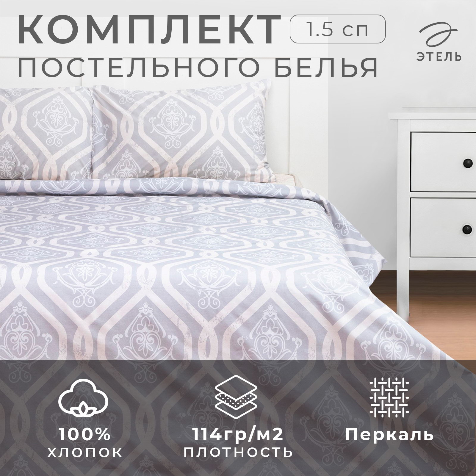 Постельное бельё 1.5-спальное Ornament, перкаль, Этель, Россия