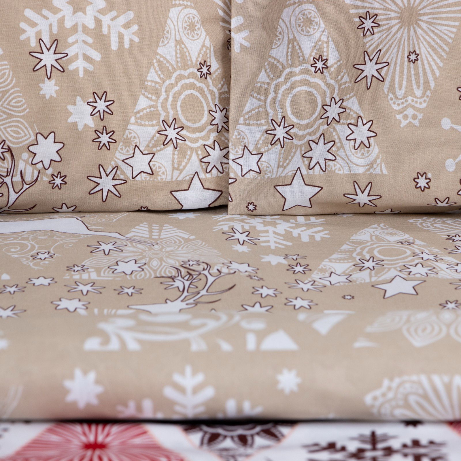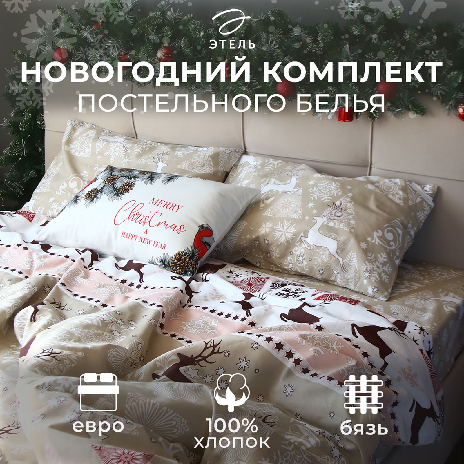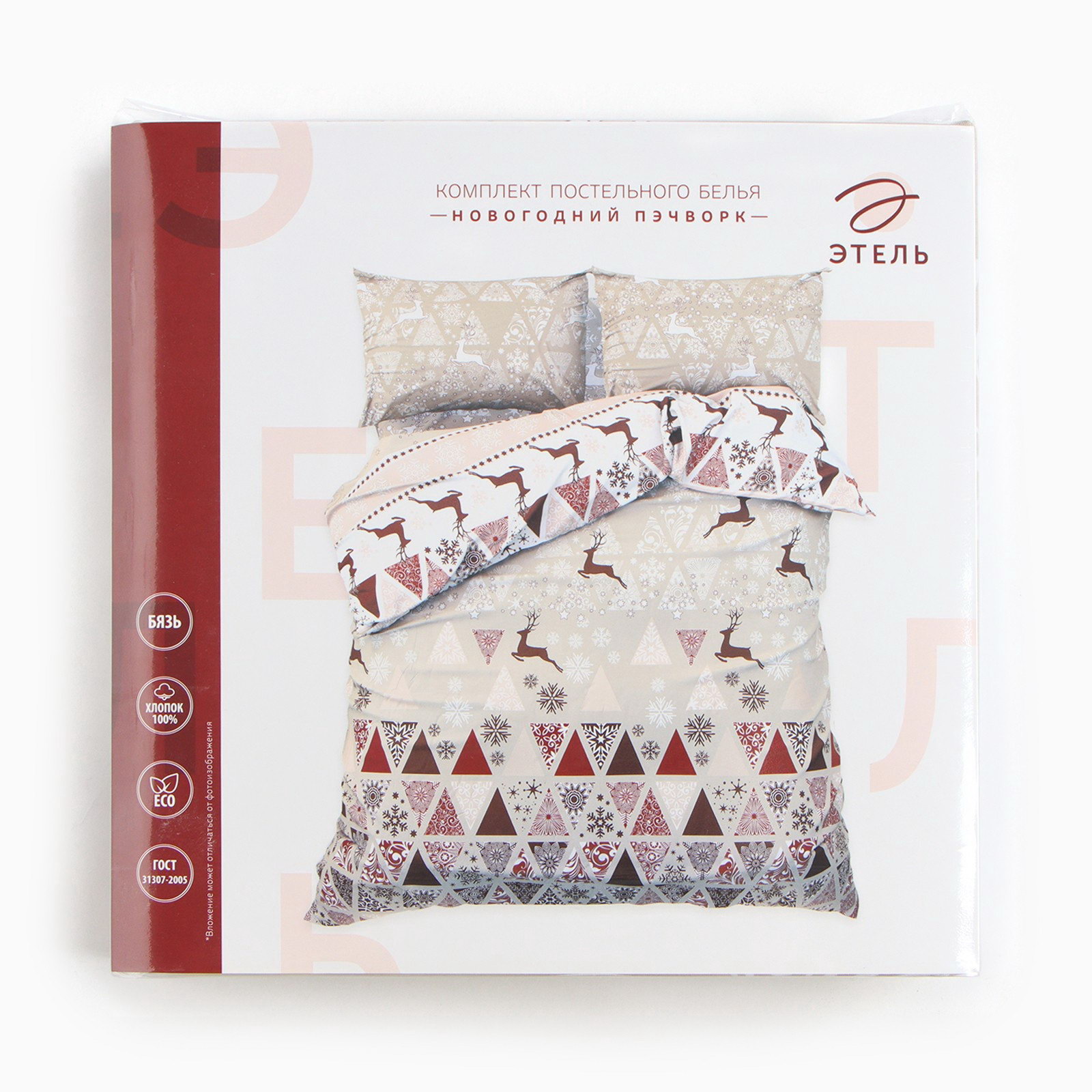 Комплектация: 2 наволочки, Пододеяльник, Простыня Декоративные элементы: Без декора, Без элементов Рекомендации по уходу: Барабанная сушка при низкой температуре, Глажка при 150 ℃, Не отбеливать, Стирка при 40 ℃ Цвет: Бежевый, Красный Размер упаковки: 30 x 8 x 30 см. Тематика праздника: Новый год tnved: 6302210000 tnved: 6302210000 Состав ткани: Хлопок Количество наволочек: 2 Размер наволочки, см: 50 x 70 Маркировка: Честный знак Назначение: Взрослым Вид застёжки наволочки: Клапан Фактура материала: Гладкий Особенности простыни: Стандартная Тематика: Новогодняя Ткань: Бязь Вид упаковки: PVC-пакет Размер пододеяльника, см: 200 x 217 Размер простыни, см: 220 x 240 Кол-во пододеяльников в комплекте: 1 Размер: Евро см Простыня в комплекте: Да На резинке: Нет Температурное ограничение: Нет Плотность, г/?2: 125 Сезон: Зима Тип принадлежности к праздникам: Новый год Вид застёжки пододеяльника: Без застёжки | ||