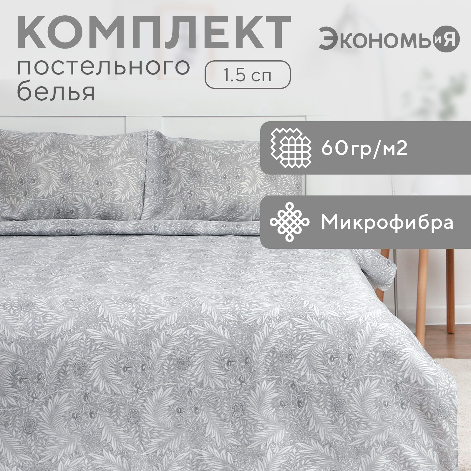 Постельное бельё 1.5 сп "Морозный узор" 143х215 см, 145х214 см, 50х70 см-1 шт, 60 г/м2, микрофибра, Экономь и Я, Россия