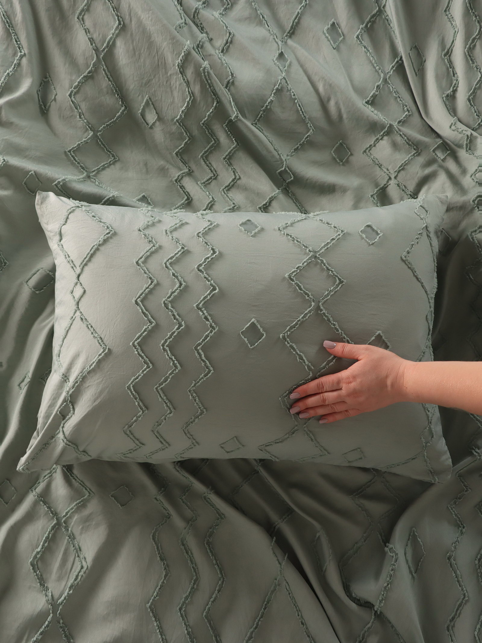 Комплектация: 2 наволочки, Пододеяльник, Простыня Рекомендации по уходу: Бережный режим глажки, Деликатная стирка при 30 ℃, Не отбеливать Сезон: Весна, Зима, Лето, Осень Размер упаковки: 30 x 8 x 30 см. Простыня в комплекте: Да Вид застёжки пододеяльника: Без застёжки Вид застёжки наволочки: Клапан Размер наволочки, см: 50 x 70 Количество наволочек: 2 Честный знак: Да Размер: Евро см Размер простыни, см: 230 x 240 Размер пододеяльника, см: 200 x 217 Тематика: Однотонная Плотность, г/?2: 110 На резинке: Нет Температурное ограничение: Нет Ткань: Микрофибра Цвет: Зелёный Вид упаковки: PVC-пакет Декоративные элементы: Тафтинг Фактура материала: Гладкий Особенности простыни: Стандартная На молнии: Нет Состав ткани: Микрофибра tnved: 6302229000 | ||
