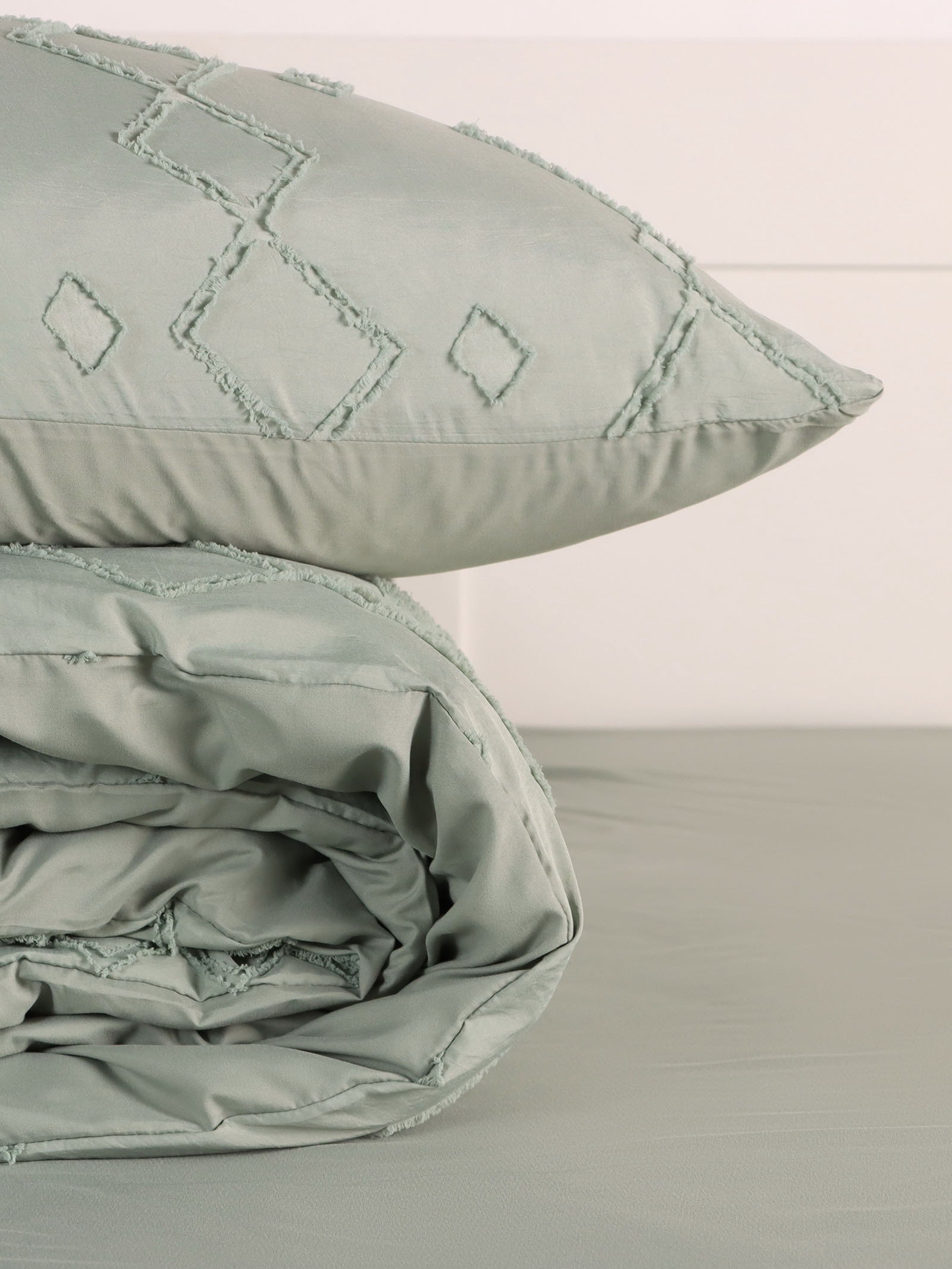 Комплектация: 2 наволочки, 2 пододеяльника, Простыня Рекомендации по уходу: Бережный режим глажки, Деликатная стирка при 30 ℃, Не отбеливать Сезон: Весна, Зима, Лето, Осень Размер упаковки: 30 x 9 x 30 см. Плотность, г/?2: 110 На резинке: Нет Простыня в комплекте: Да Температурное ограничение: Нет Тематика: Однотонная Состав ткани: Полиэстер Размер пододеяльника, см: 143 x 215 Размер простыни, см: 230 x 240 Размер: Семейное (дуэт) см Вид застёжки наволочки: Клапан Вид застёжки пододеяльника: Без застёжки Размер наволочки, см: 50 x 70 Количество наволочек: 2 Честный знак: Да Ткань: Микрофибра Цвет: Зелёный Вид упаковки: PVC-пакет Декоративные элементы: Тафтинг Фактура материала: Гладкий Особенности простыни: Стандартная На молнии: Нет На молнии: Нет tnved: 6302229000 | ||