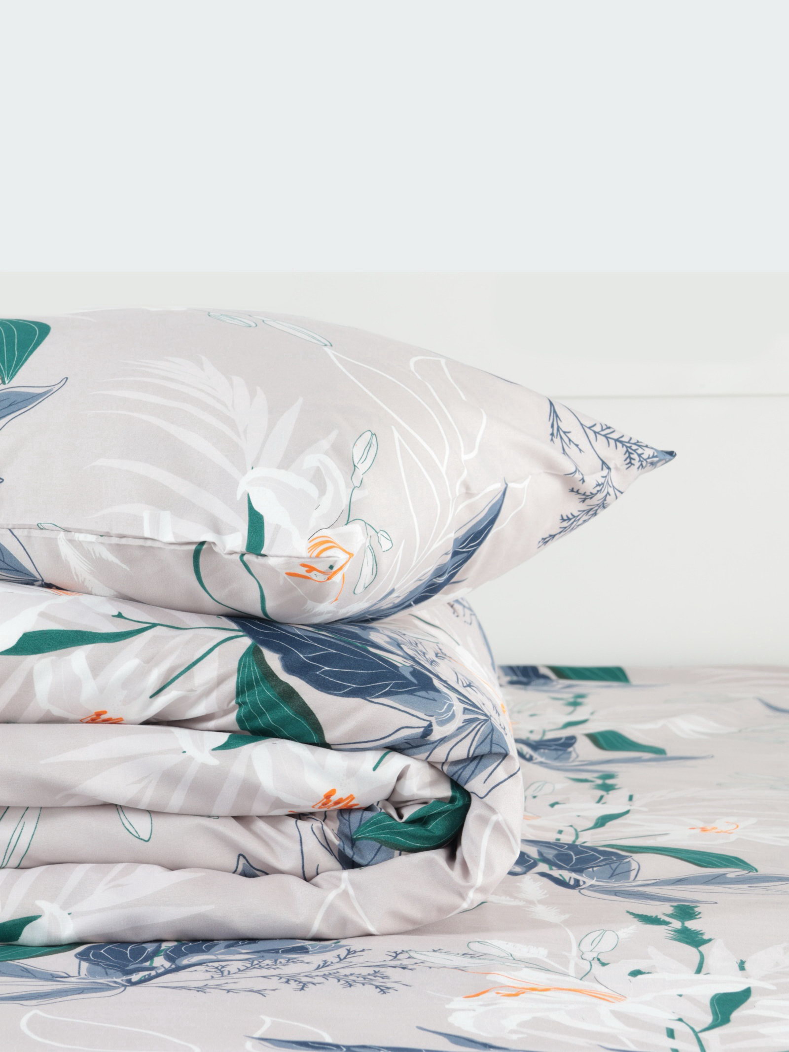 Комплектация: 2 наволочки, 2 пододеяльника, Простыня Рекомендации по уходу: Барабанная сушка при низкой температуре, Глажка при 110 ℃, Не отбеливать, Стирка при 30 ℃ Сезон: Весна, Зима, Лето, Осень Размер упаковки: 25 x 9 x 35 см. Размер наволочки, см: 50 x 70 Размер пододеяльника, см: 143 x 215 Цвет: Серый Состав ткани: Полиэстер Размер простыни, см: 215 x 220 Тематика: Цветочно-растительная Размер: Семейное (дуэт) см Вид застёжки пододеяльника: Без застёжки Количество наволочек: 2 Вид застёжки наволочки: Клапан Честный знак: Да Ткань: Полисатин Температурное ограничение: Нет Простыня в комплекте: Да Плотность, г/?2: 80 На резинке: Нет tnved: 6302210000 Вид застёжки: Клапан Вид упаковки: PVC-коробка Декоративные элементы: Без элементов Назначение: Взрослым Фактура материала: Гладкий Особенности простыни: Стандартная На молнии: Нет | ||