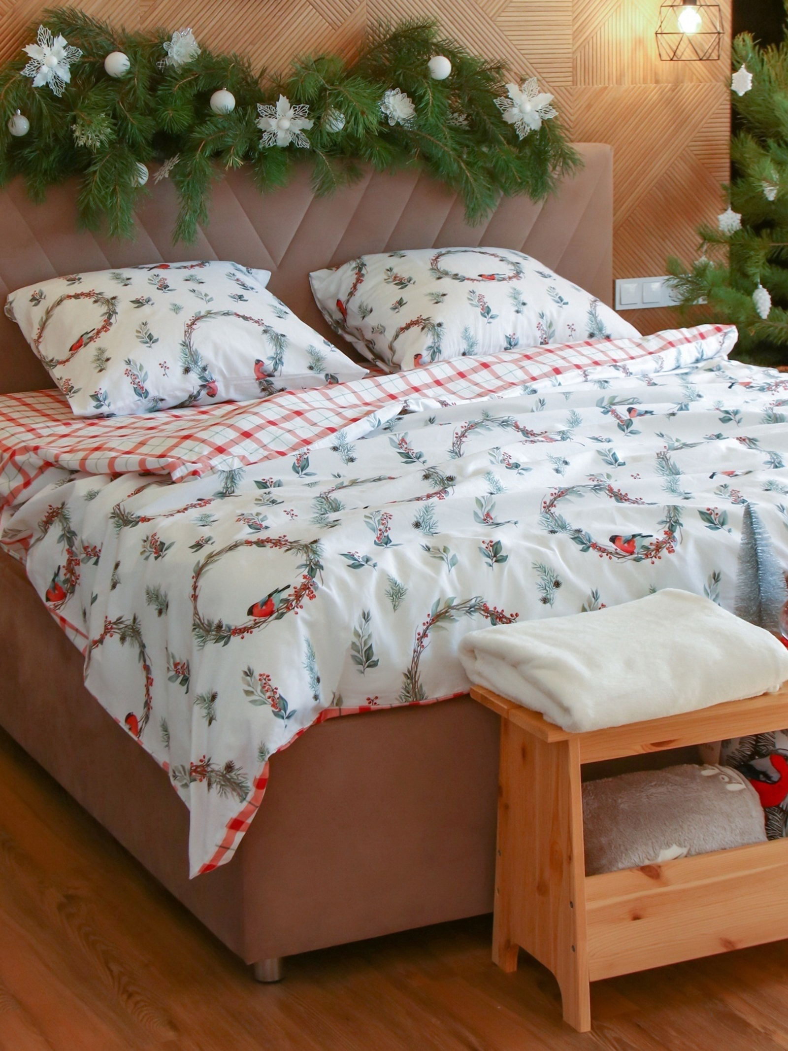 Постельное бельё дуэт "Этель. Снегири", поплин, Этель, Россия