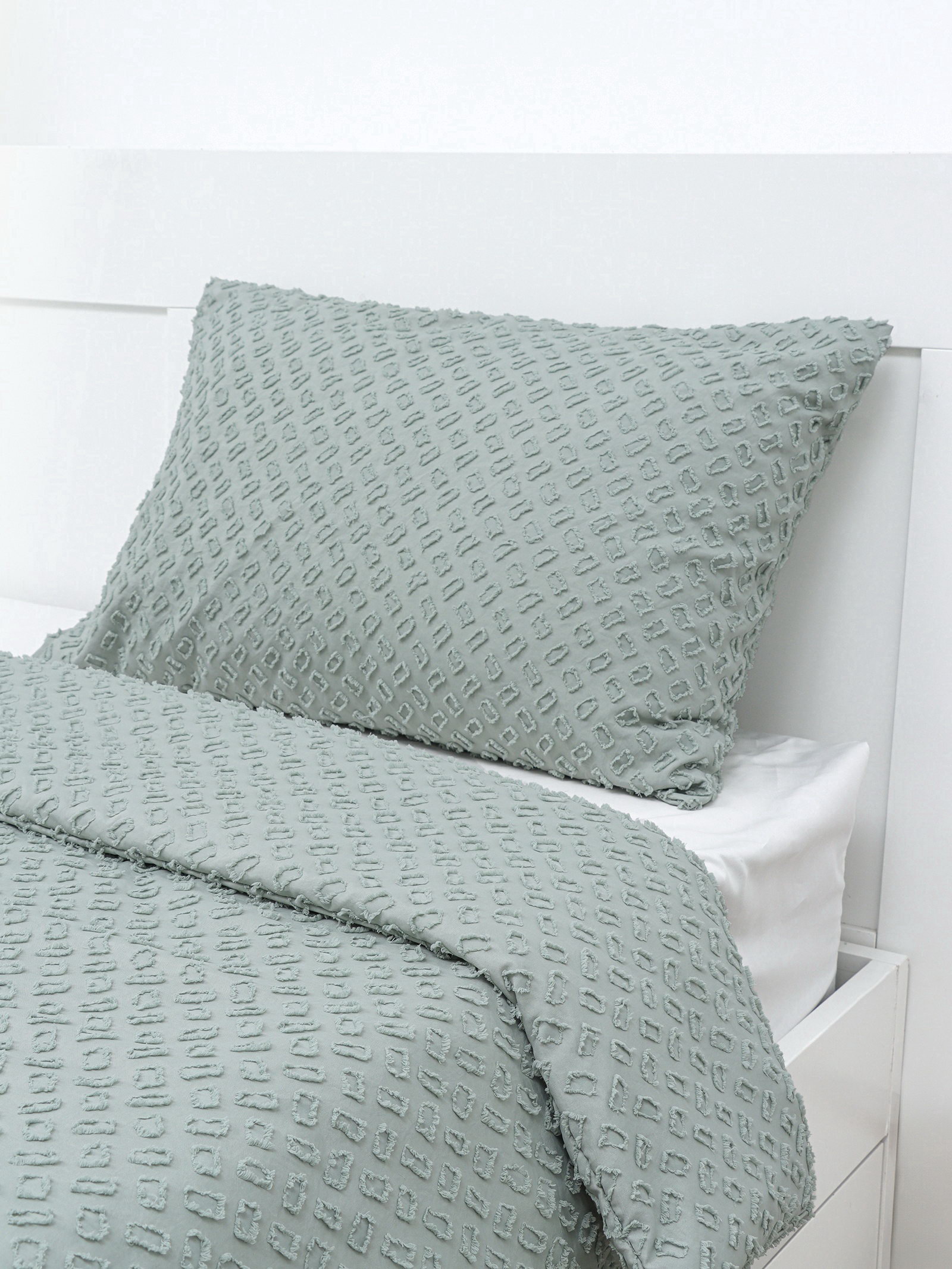 Рекомендации по уходу: Барабанная сушка при низкой температуре, Глажка при 110 ℃, Не отбеливать, Стирка при 30 ℃ Комплектация: 2 наволочки, Пододеяльник Сезон: Весна, Зима, Лето, Осень Размер упаковки: 30 x 9 x 30 см. tnved: 6302229000 Температурное ограничение: Нет Честный знак: Да Плотность, г/?2: 110 Размер пододеяльника, см: 200 x 217 Простыня в комплекте: Нет Размер: Евро см Цвет: Зелёный Вид застёжки наволочки: Клапан Состав ткани: Полиэстер Вид застёжки пододеяльника: Без застёжки Размер наволочки, см: 50 x 70 Количество наволочек: 2 Декоративные элементы: Тафтинг Ткань: Микрофибра На молнии: Нет Вид застёжки: Клапан Назначение: Взрослым Вид упаковки: PVC-коробка Тематика: Однотонная Окунитесь в атмосферу свежести и спокойствия с нашим зеленым евро комплектом постельного белья с тафтингом "Квадрат". Мягкая микрофибра и современный дизайн подарят вам незабываемые ощущения комфорта и уюта. Почему этот комплект постельного белья станет вашим фаворитом: