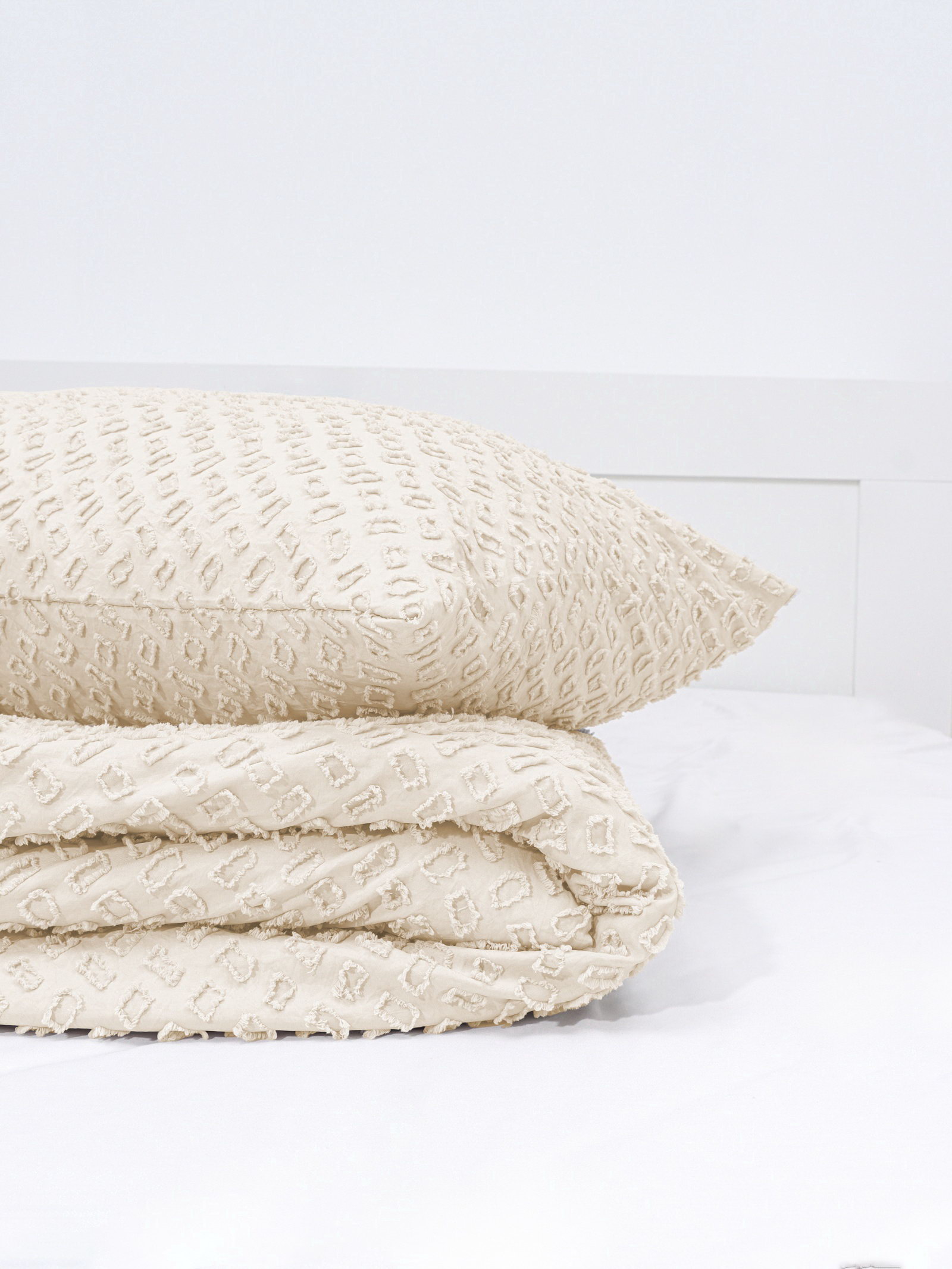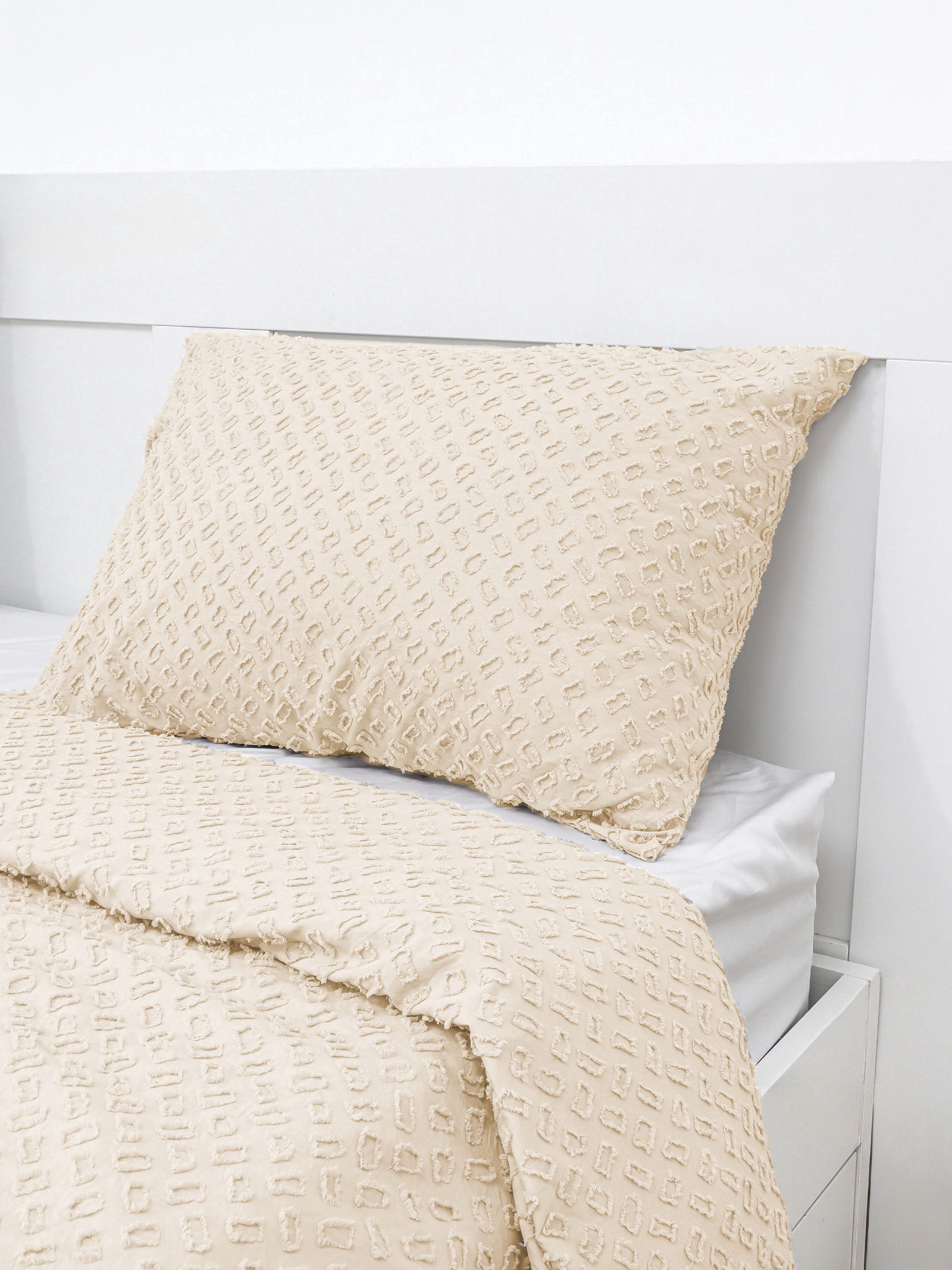 Рекомендации по уходу: Барабанная сушка при низкой температуре, Глажка при 110 ℃, Не отбеливать, Стирка при 30 ℃ Комплектация: 2 наволочки, Пододеяльник Сезон: Весна, Зима, Лето, Осень Размер упаковки: 30 x 9 x 30 см. tnved: 6302229000 Температурное ограничение: Нет Честный знак: Да Плотность, г/?2: 110 Размер пододеяльника, см: 200 x 217 Простыня в комплекте: Нет Размер: Евро см Вид застёжки пододеяльника: Без застёжки Цвет: Бежевый Вид застёжки наволочки: Клапан Состав ткани: Полиэстер Размер наволочки, см: 50 x 70 Количество наволочек: 2 Ткань: Микрофибра Декоративные элементы: Тафтинг На молнии: Нет Вид застёжки: Клапан Тематика: Однотонная Вид упаковки: PVC-коробка Назначение: Взрослым Преобразите свою спальню в оазис спокойствия и уюта с нашим бежевым евро комплектом постельного белья с тафтингом "Квадрат". Мягкая микрофибра и лаконичный дизайн подарят вам незабываемые ощущения комфорта и релаксации. Почему этот комплект постельного белья станет вашим любимым: