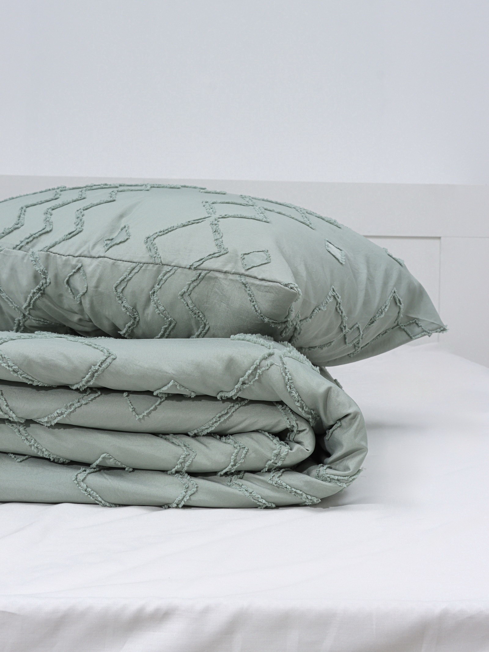 Рекомендации по уходу: Барабанная сушка при низкой температуре, Глажка при 110 ℃, Не отбеливать, Стирка при 30 ℃ Комплектация: 2 наволочки, Пододеяльник Сезон: Весна, Зима, Лето, Осень Размер упаковки: 30 x 7 x 30 см. tnved: 6302229000 Температурное ограничение: Нет Честный знак: Да Размер пододеяльника, см: 175 x 215 Декоративные элементы: Тафтинг Простыня в комплекте: Нет Размер: 2-спальное см Ткань: Микрофибра Размер наволочки, см: 50 x 70 Вид застёжки наволочки: Клапан Плотность, г/?2: 110 Состав ткани: Полиэстер Количество наволочек: 2 Вид застёжки пододеяльника: Без застёжки Цвет: Зелёный На молнии: Нет Вид упаковки: PVC-коробка Назначение: Взрослым Вид застёжки: Клапан Тематика: Однотонная | ||