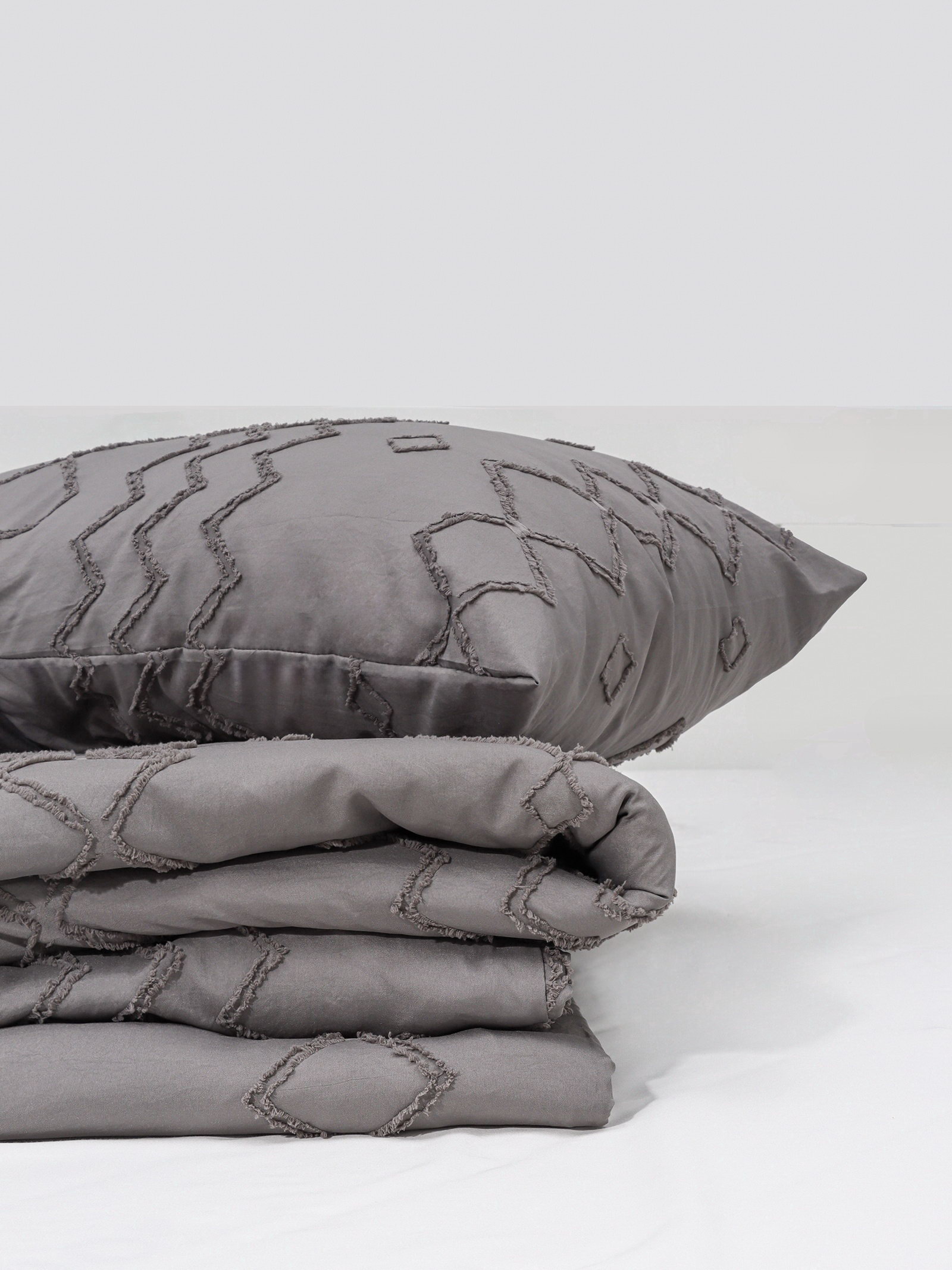 Рекомендации по уходу: Барабанная сушка при низкой температуре, Глажка при 110 ℃, Не отбеливать, Стирка при 30 ℃ Комплектация: 2 наволочки, Пододеяльник Сезон: Весна, Зима, Лето, Осень Размер упаковки: 30 x 7 x 30 см. tnved: 6302229000 Честный знак: Да Температурное ограничение: Нет Состав ткани: Полиэстер Размер наволочки, см: 50 x 70 Простыня в комплекте: Нет Размер пододеяльника, см: 175 x 215 Декоративные элементы: Тафтинг Размер: 2-спальное см Ткань: Микрофибра Плотность, г/?2: 110 Количество наволочек: 2 Вид застёжки наволочки: Клапан Вид застёжки пододеяльника: Без застёжки Цвет: Серый На молнии: Нет Назначение: Взрослым Тематика: Однотонная Вид застёжки: Клапан Вид упаковки: PVC-коробка | ||