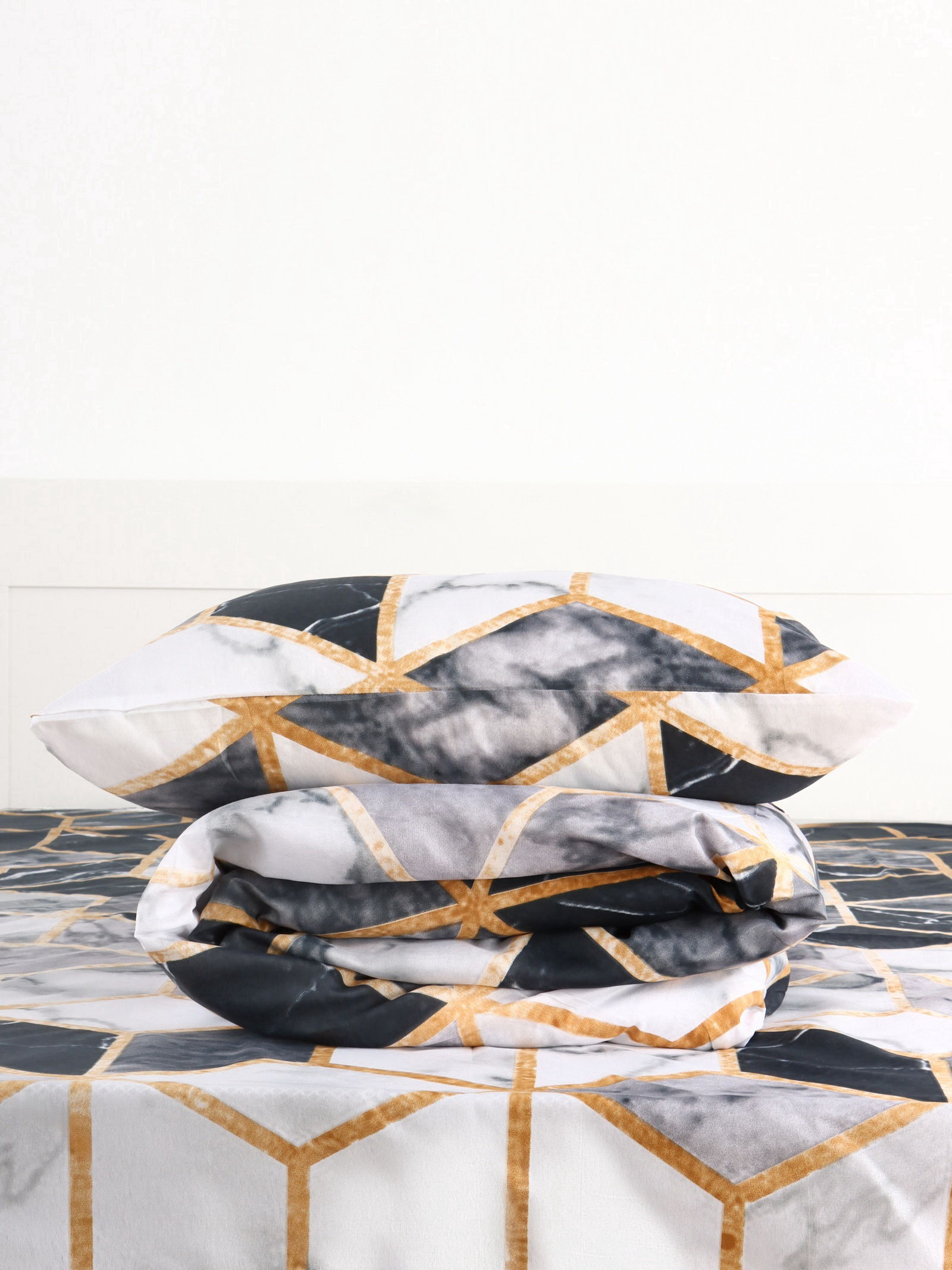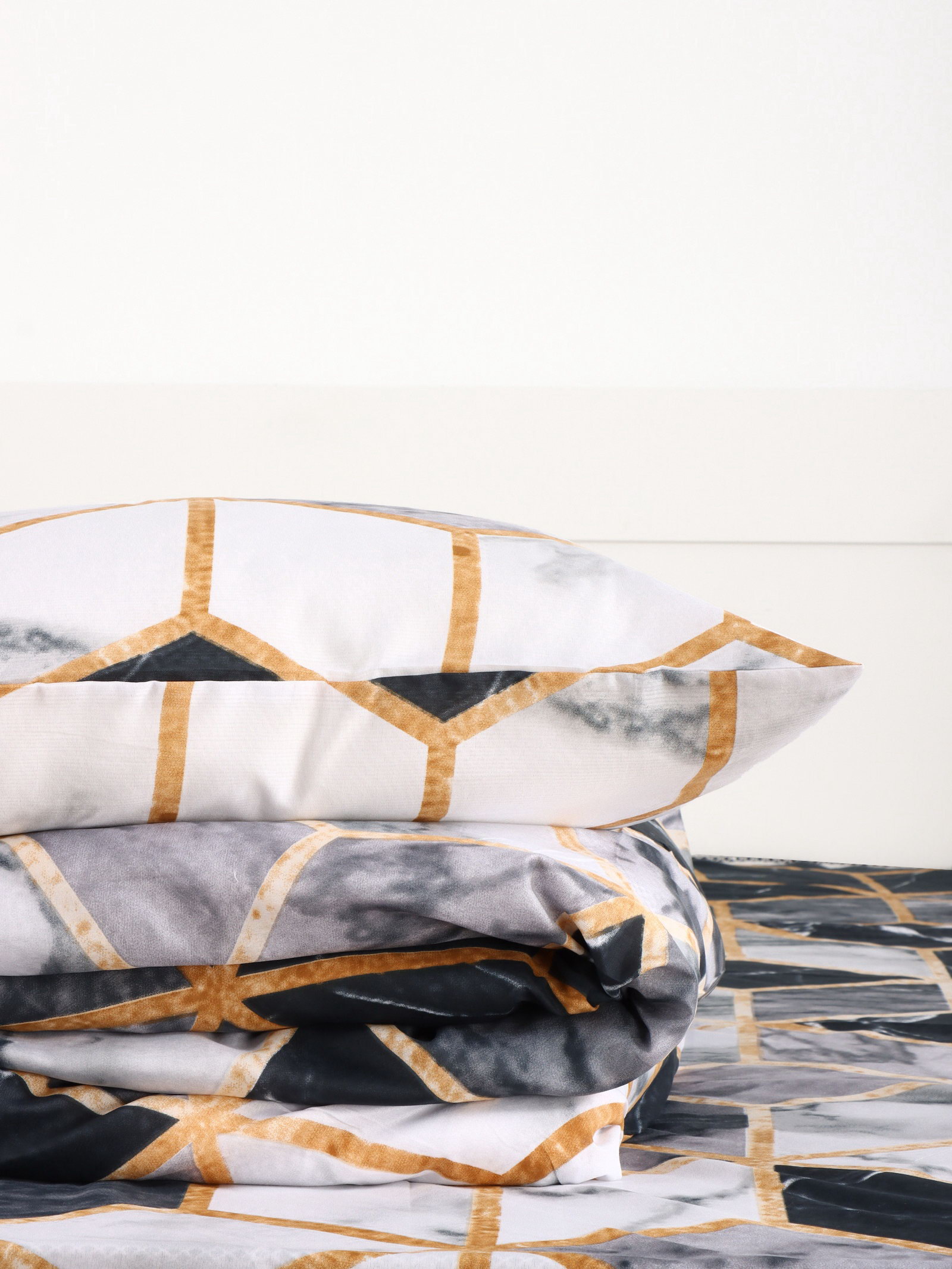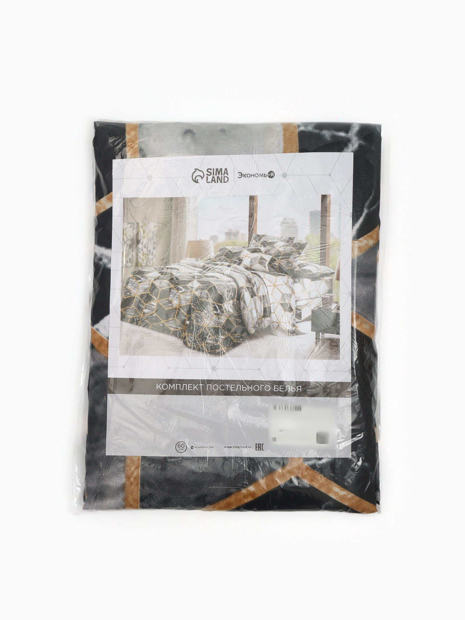 Постельное бельё 1.5-спальное микрофибра 60 г/?2, чёрное, белое, 39x29x2 см., Экономь и Я, Китай