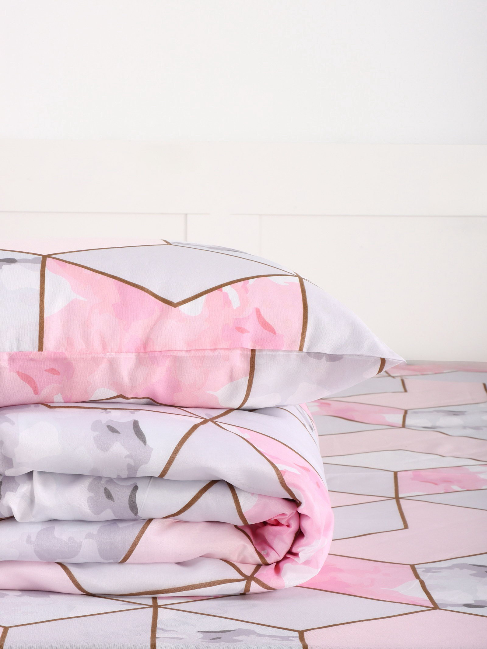 Постельное бельё 1.5-спальное микрофибра 60 г/?2, розовое, белое, 39x29x2 см., Экономь и Я, Китай