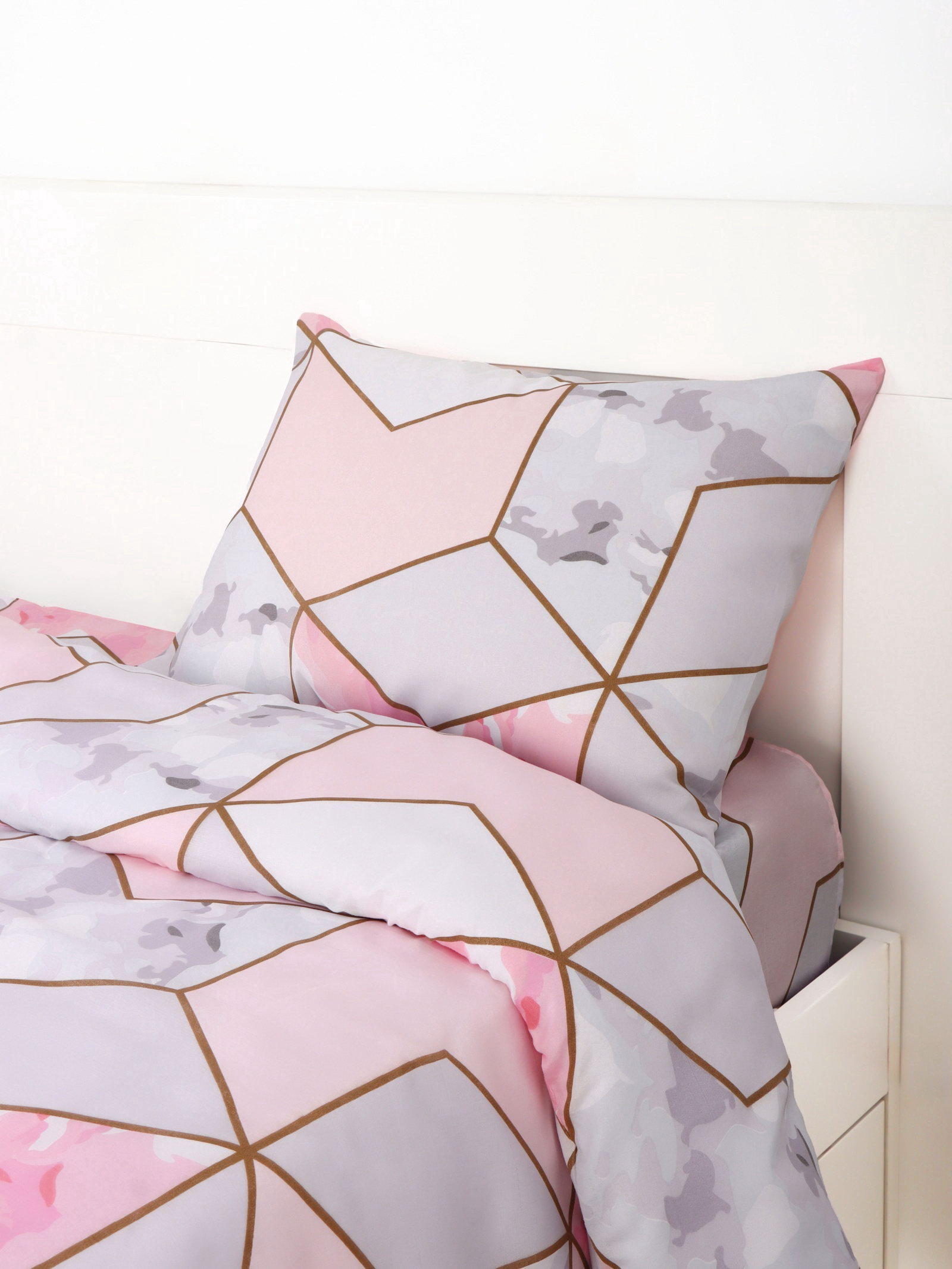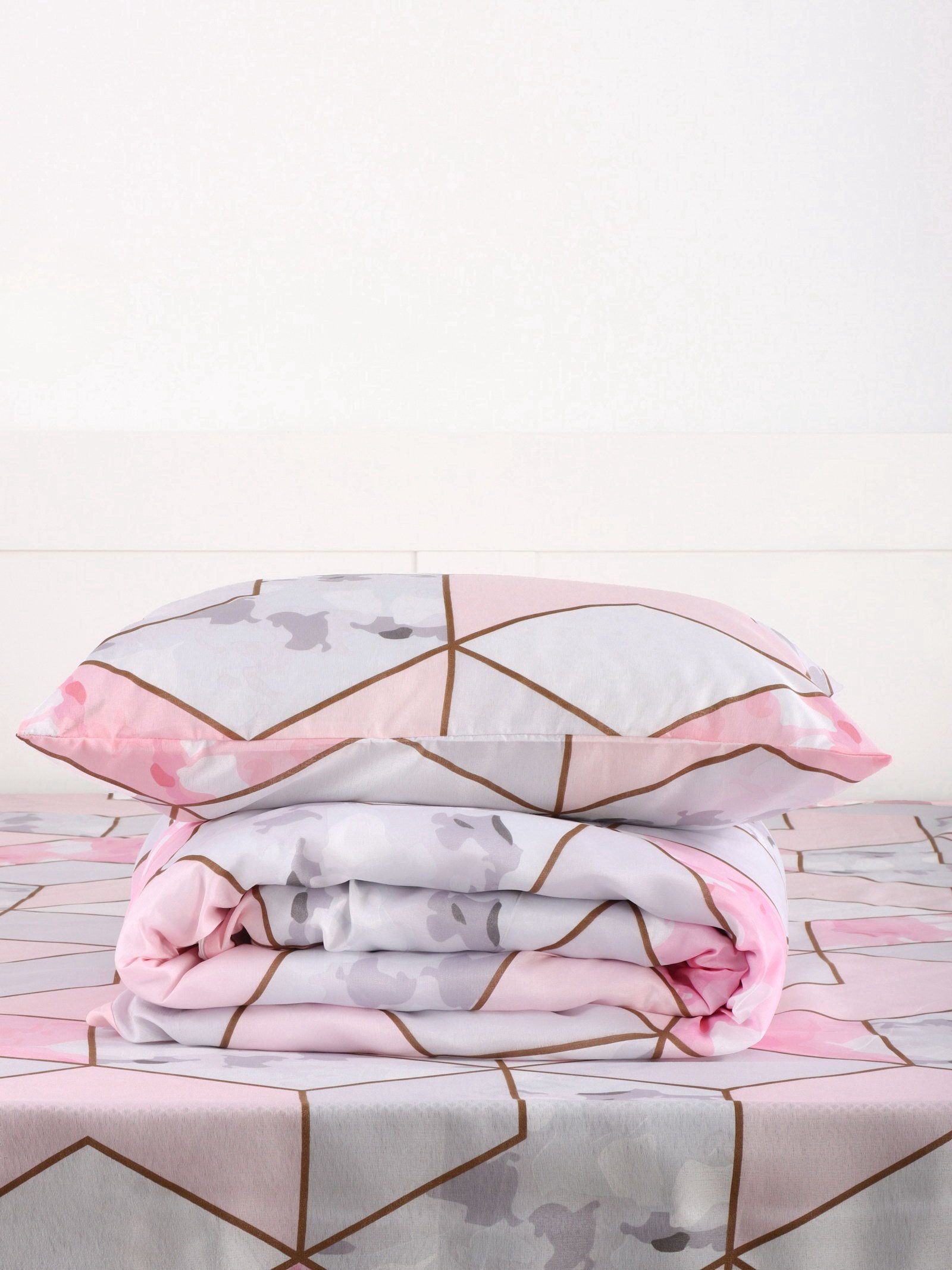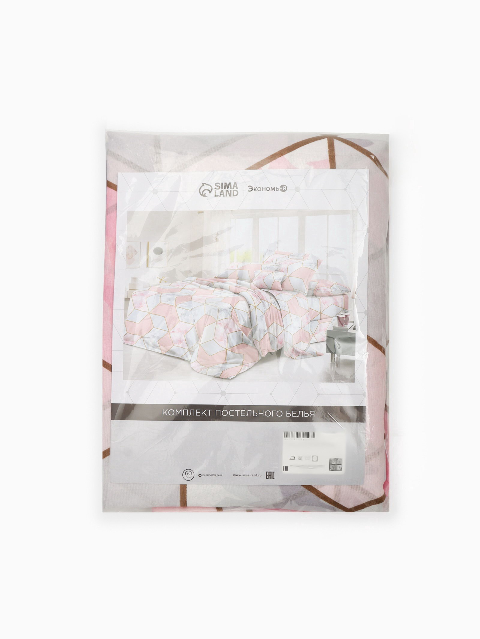 Постельное бельё 2-спальное микрофибра 60 г/?2, розовое, белое, 39x29x3 см., Экономь и Я, Китай