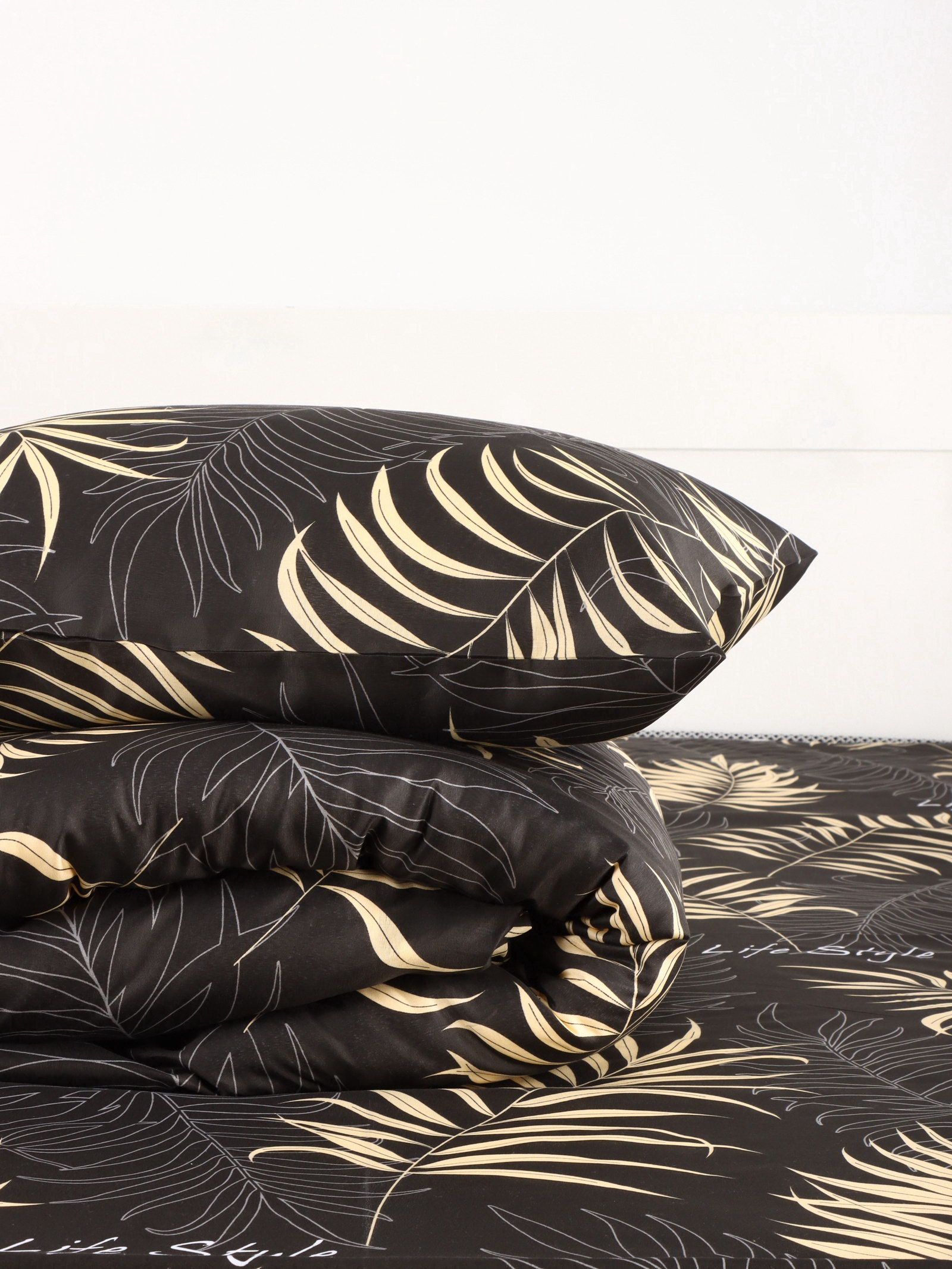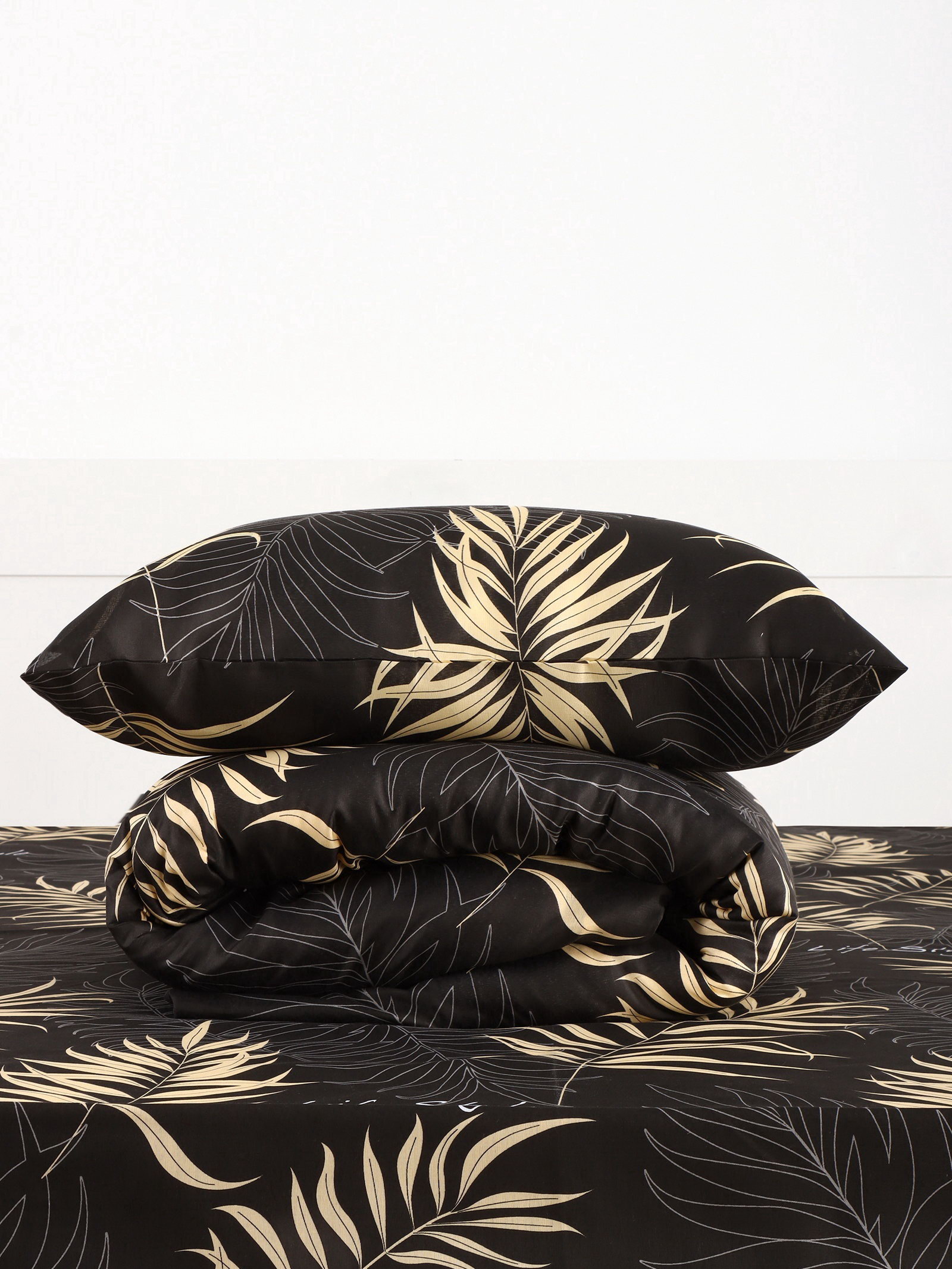 Постельное бельё 2-спальное микрофибра 60 г/?2, чёрное, золотое, 39x29x3 см., Экономь и Я, Китай