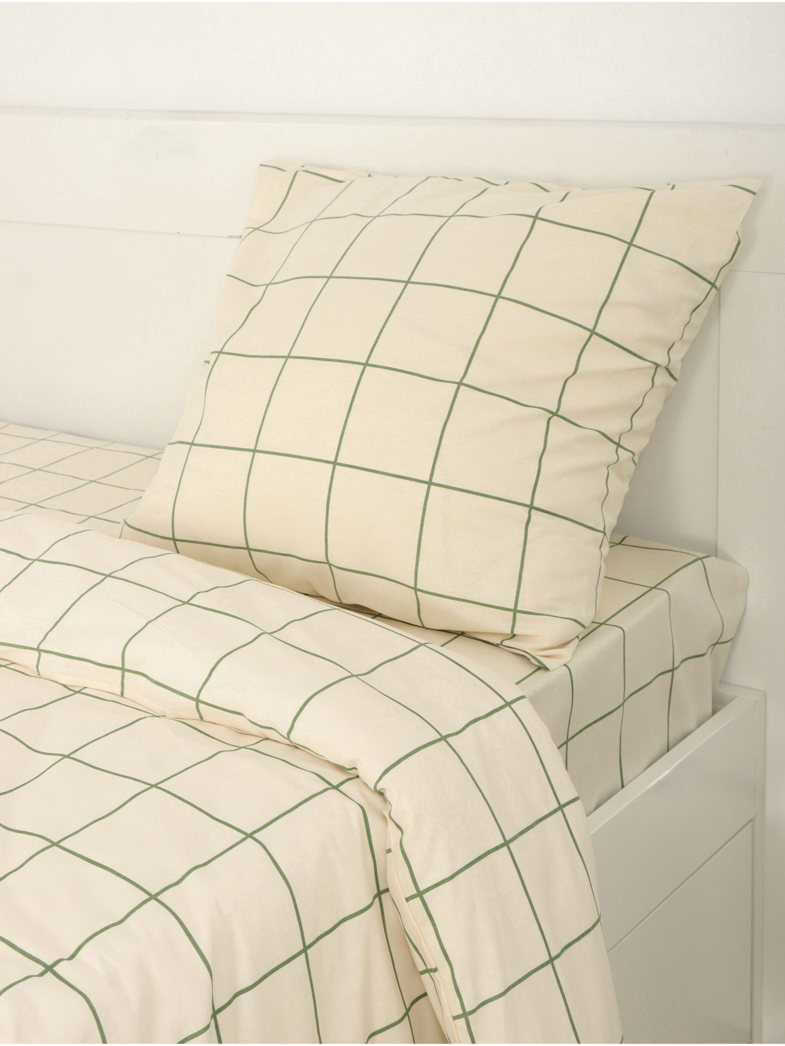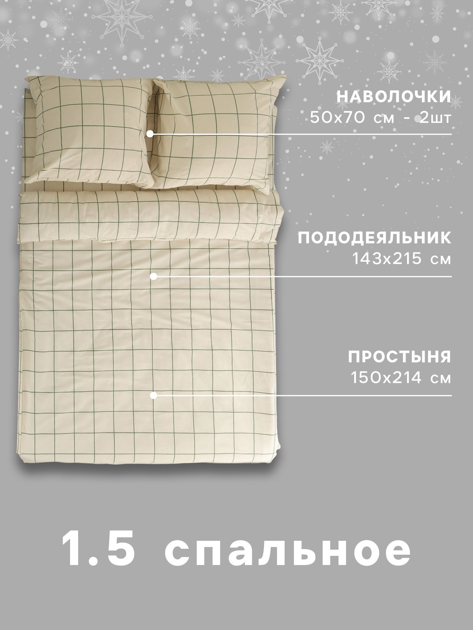 Комплектация: 2 наволочки, Пододеяльник, Простыня Рекомендации по уходу: Барабанная сушка при низкой температуре, Глажка при 150 ℃, Не отбеливать, Стирка при 40 ℃ Сезон: Демисезон, Зима Размер упаковки: 30 x 7 x 30 см. tnved: 6302210000 Температурное ограничение: Нет Честный знак: Да Размер: 1.5-спальное см Количество наволочек: 2 Состав ткани: Хлопок Размер наволочки, см: 70 x 70 Тип принадлежности к праздникам: Новый год Ткань: Бязь Размер пододеяльника, см: 143 x 215 Размер простыни, см: 150 x 214 Простыня в комплекте: Да Тематика: Новогодняя Декоративные элементы: Без элементов Особенности простыни: Стандартная Вид застёжки наволочки: Клапан Кол-во пододеяльников в комплекте: 1 На резинке: Нет Вид застёжки пододеяльника: Без застёжки Цвет: Бежевый Тематика праздника: Новый год Вид упаковки: PVC-коробка Плотность, г/?2: 120 Фактура материала: Гладкий Представьте себе тихий вечер перед Новым годом, когда семья собирается вместе, а постельное белье "Этель. Новогодняя клетка" мягко ложится на кровать, создавая атмосферу тепла и праздника. Этот комплект постельного белья для 1.5-спального места из хлопковой бязи подходит для тех, кто ищет уют в зимние и демисезонные дни, помогая взрослым и подросткам ощущать заботу в повседневной рутине. В нем нет лишних деталей только гладкая фактура и бежевый цвет с зелёной клеткой, который гармонирует с любым интерьером, делая каждый сон спокойным и комфортным. Плюсы товара