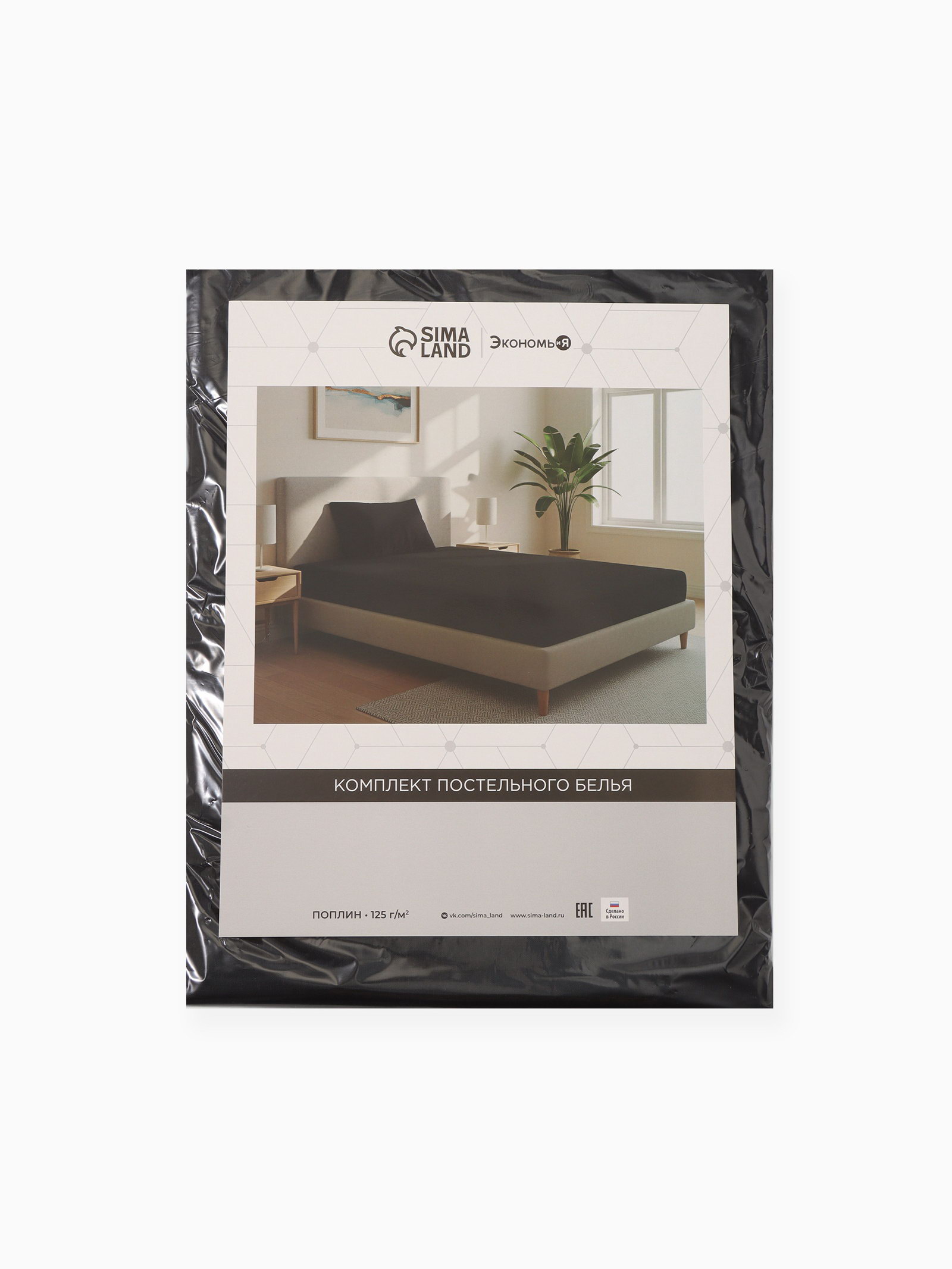 Постельное бельё 1.5-спальное поплин, чёрное, Экономь и Я, Россия
