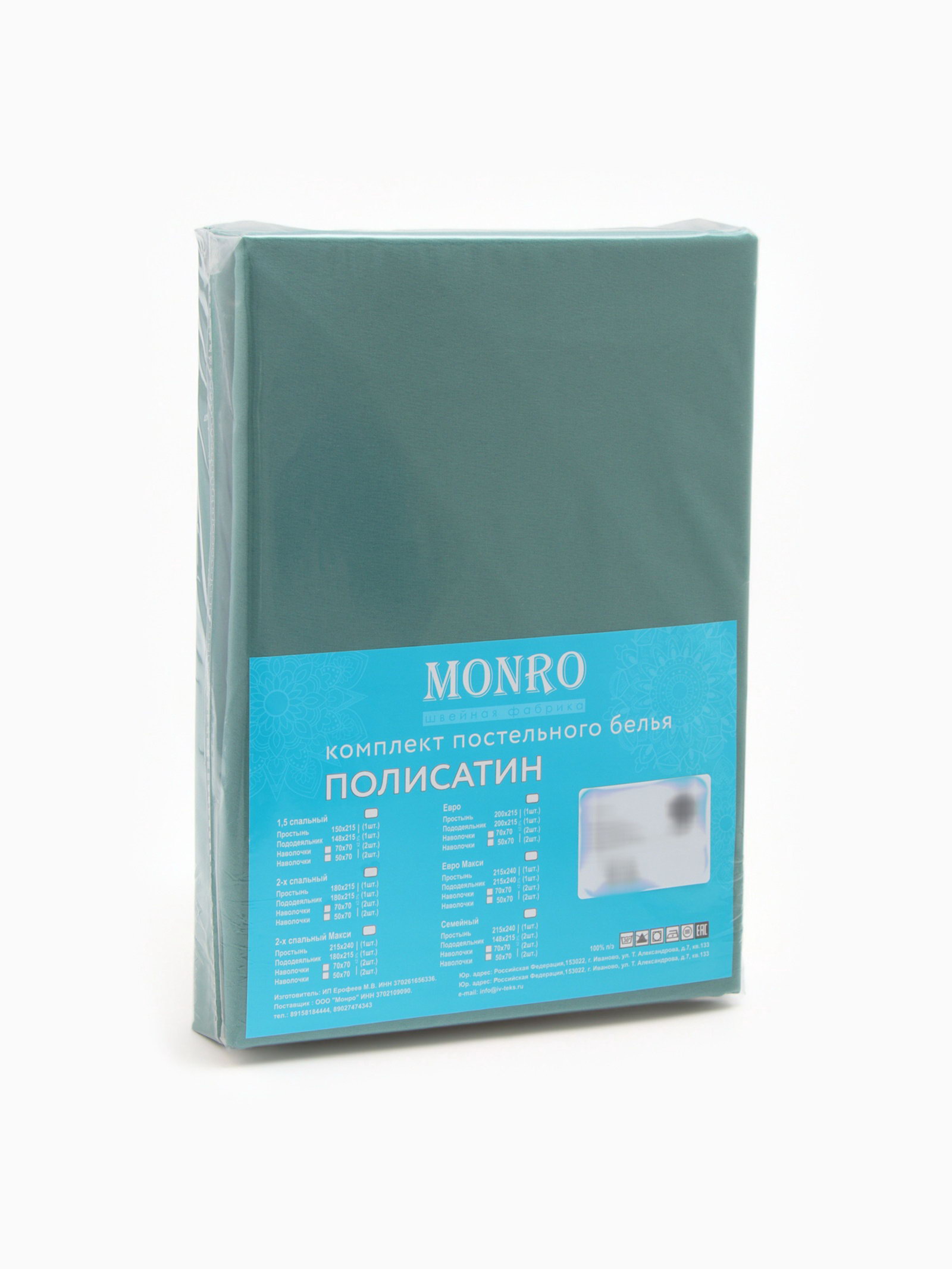 Постельное бельё 1.5-спальное "Монро", полисатин, цвет малахит, Monro, Россия