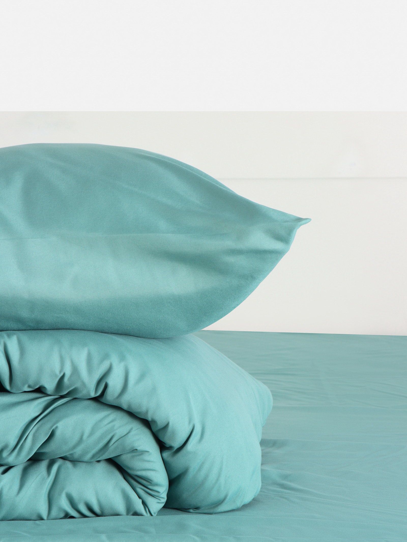 Комплектация: 2 наволочки, Пододеяльник, Простыня Рекомендации по уходу: Барабанная сушка при низкой температуре, Глажка при 110 ℃, Не отбеливать, Стирка при 30 ℃ Размер упаковки: 25 x 5 x 35 см. tnved: 6302229000 Температурное ограничение: Нет Вид застёжки наволочки: Клапан Простыня в комплекте: Да Размер наволочки, см: 70 x 70 Количество наволочек: 2 Вид застёжки пододеяльника: Без застёжки На резинке: Нет Вид упаковки: PVC-коробка Цвет: Зелёный Размер: 2-спальное см Размер простыни, см: 180 x 215 Размер пододеяльника, см: 180 x 215 Тематика: Однотонная Ткань: Полисатин Декоративные элементы: Без элементов Назначение: Взрослым Состав ткани: Полиэстер Особенности простыни: Стандартная | ||