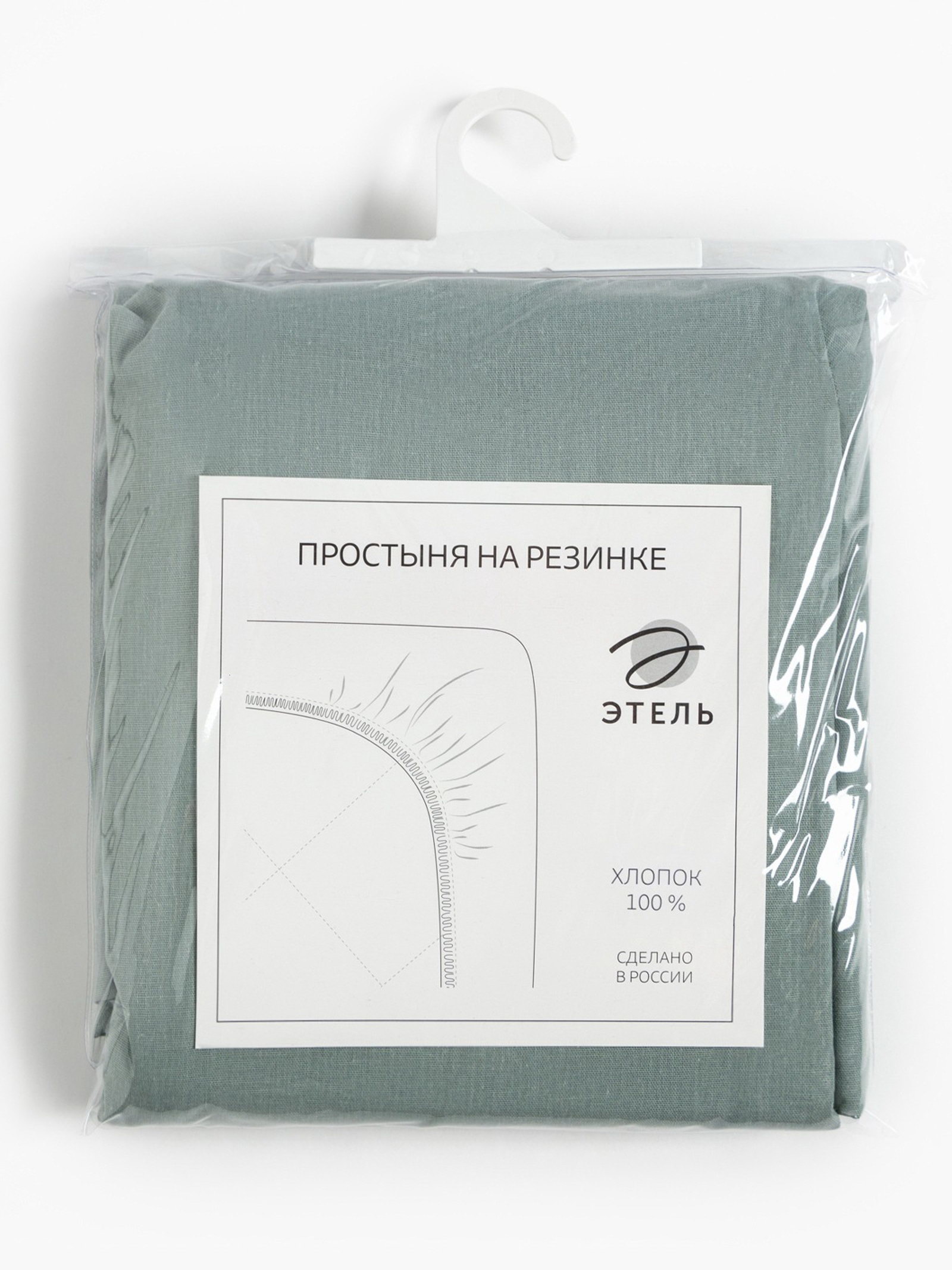 Простыня на резинке 1.5-спальная 140x200+25 см, серо-зелёная, бязь, 140x200 см., Этель, Россия