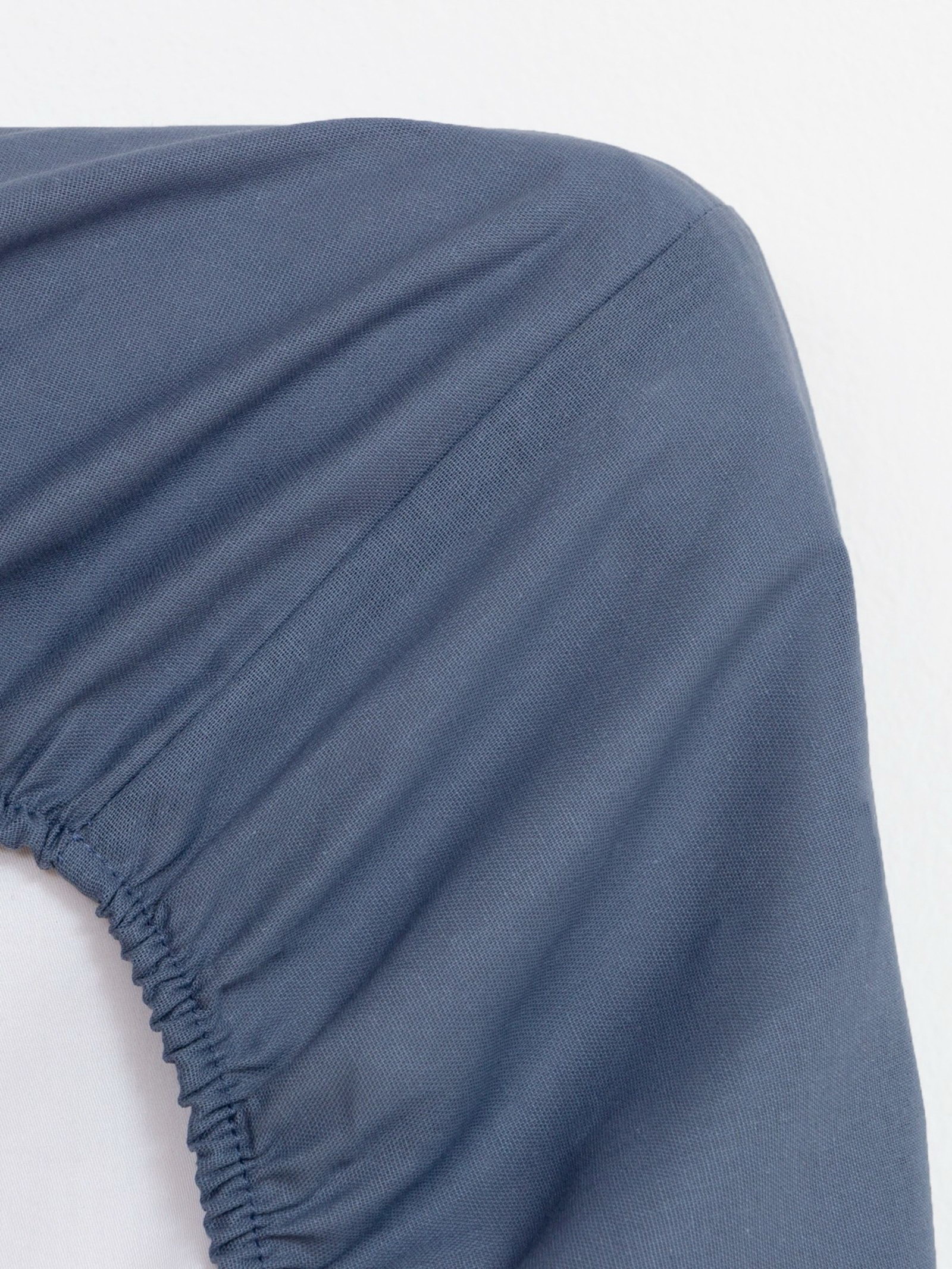 Простыня на резинке 2-спальная 180x200+25 см, синяя, бязь, 145x215 см., Этель, Россия