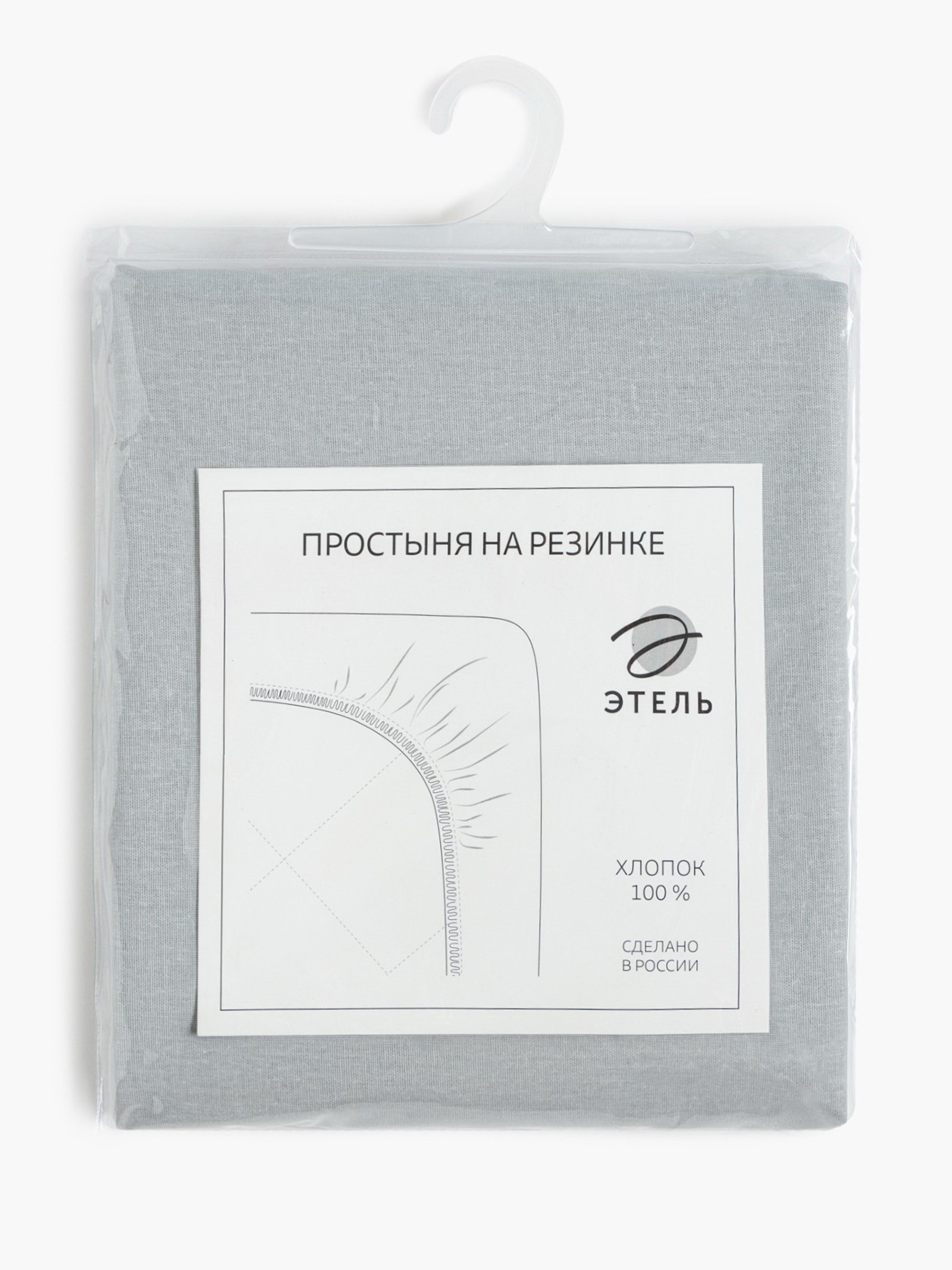 Простыня на резинке 2-спальная 180x200+25 см, светло-серая, бязь, 180x200 см., Этель, Россия