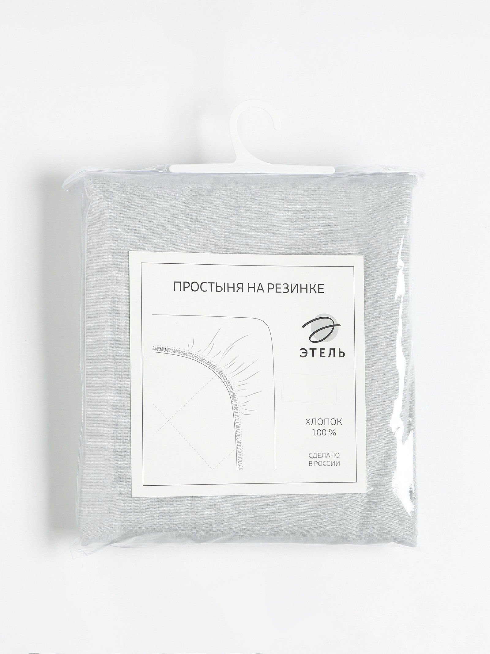 Простыня на резинке 2-спальная 160x200+25 см, серая, поплин, 160x200 см., Этель, Россия