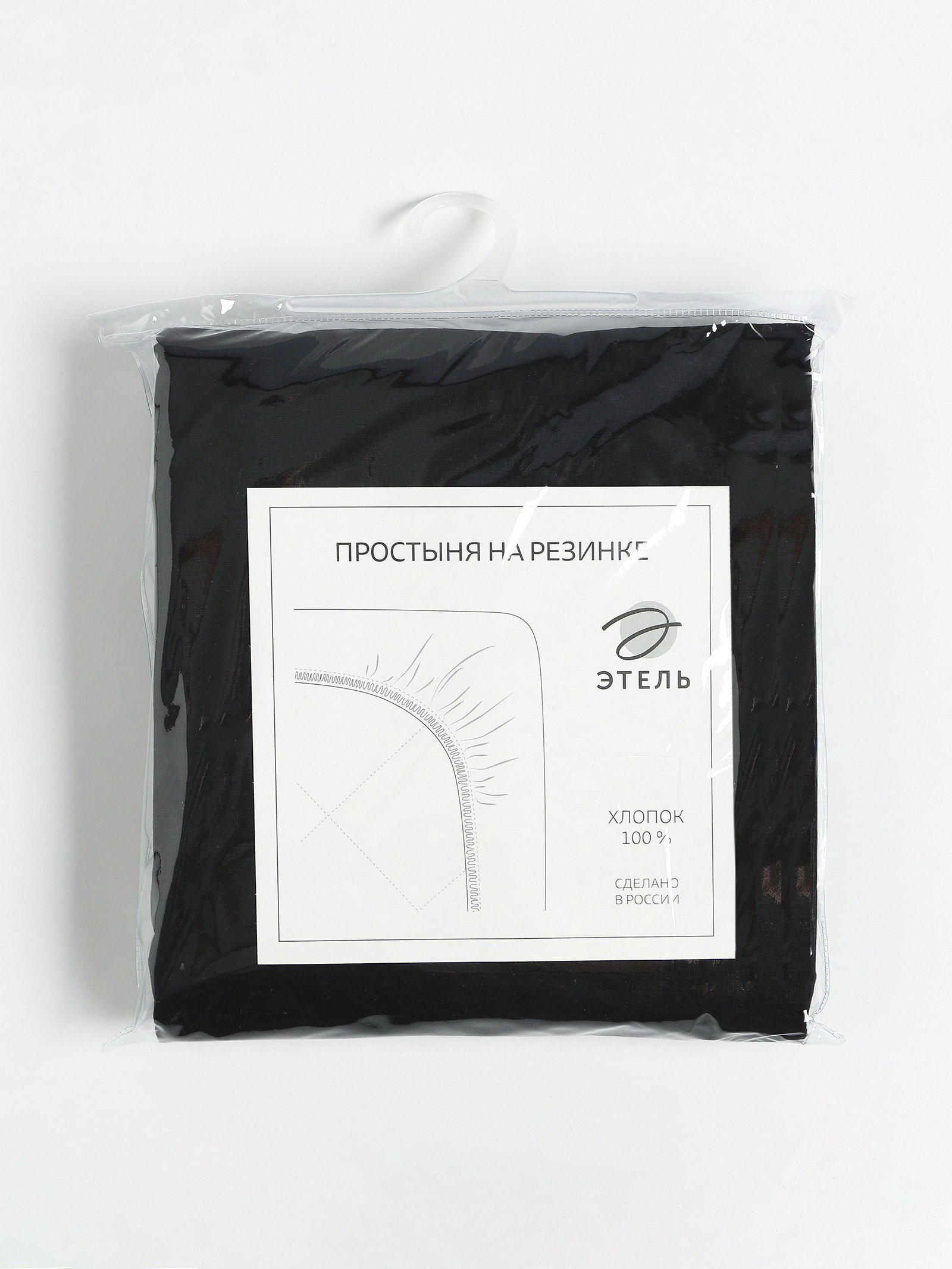 Простыня на резинке 1.5-спальная 140x200+25 см, чёрная, поплин, 140x200 см., Этель, Россия