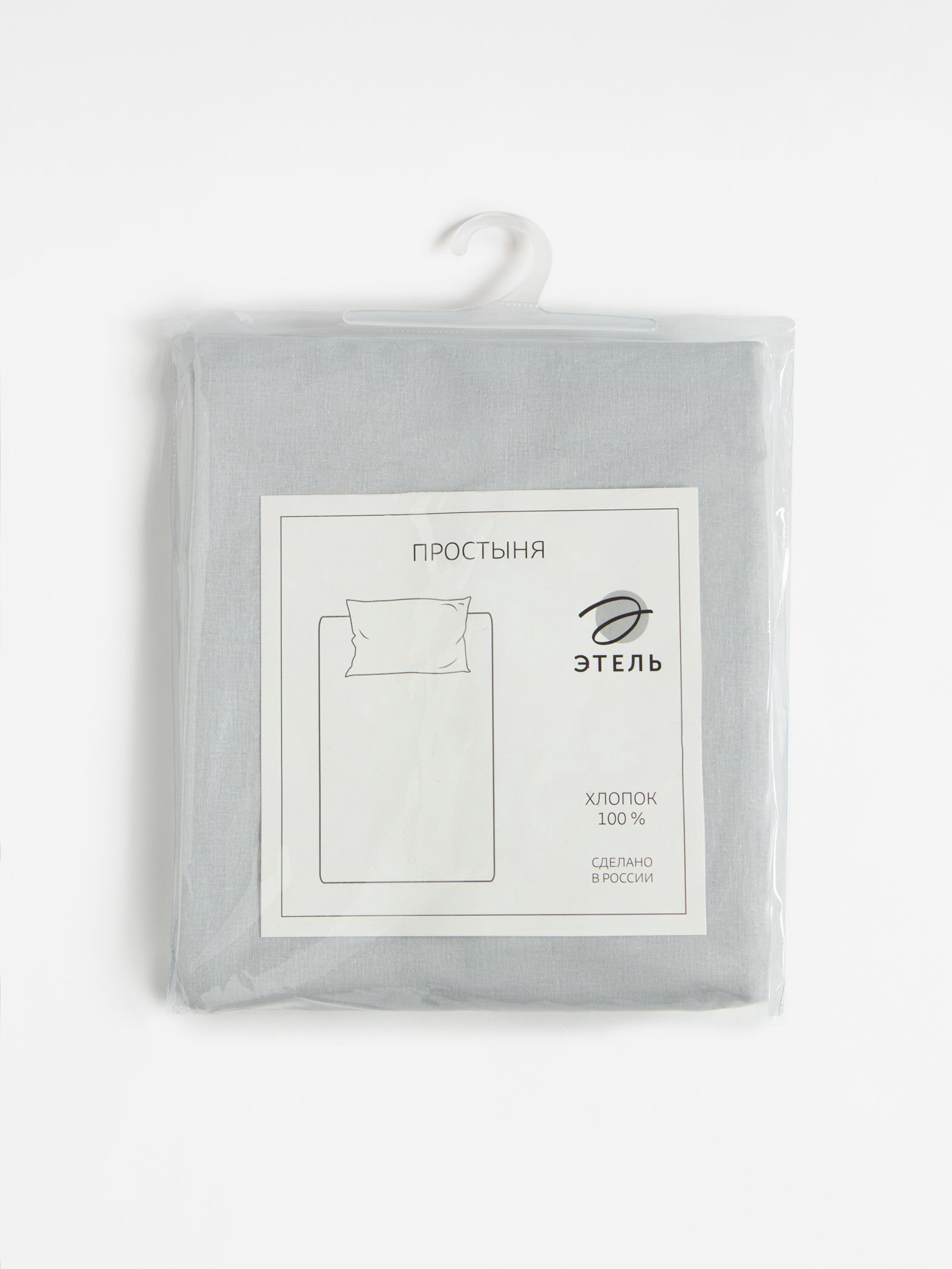 Простыня 1.5 спальная 150x215 см, серая, хлопок 100%, поплин, 150x215 см., Этель, Россия