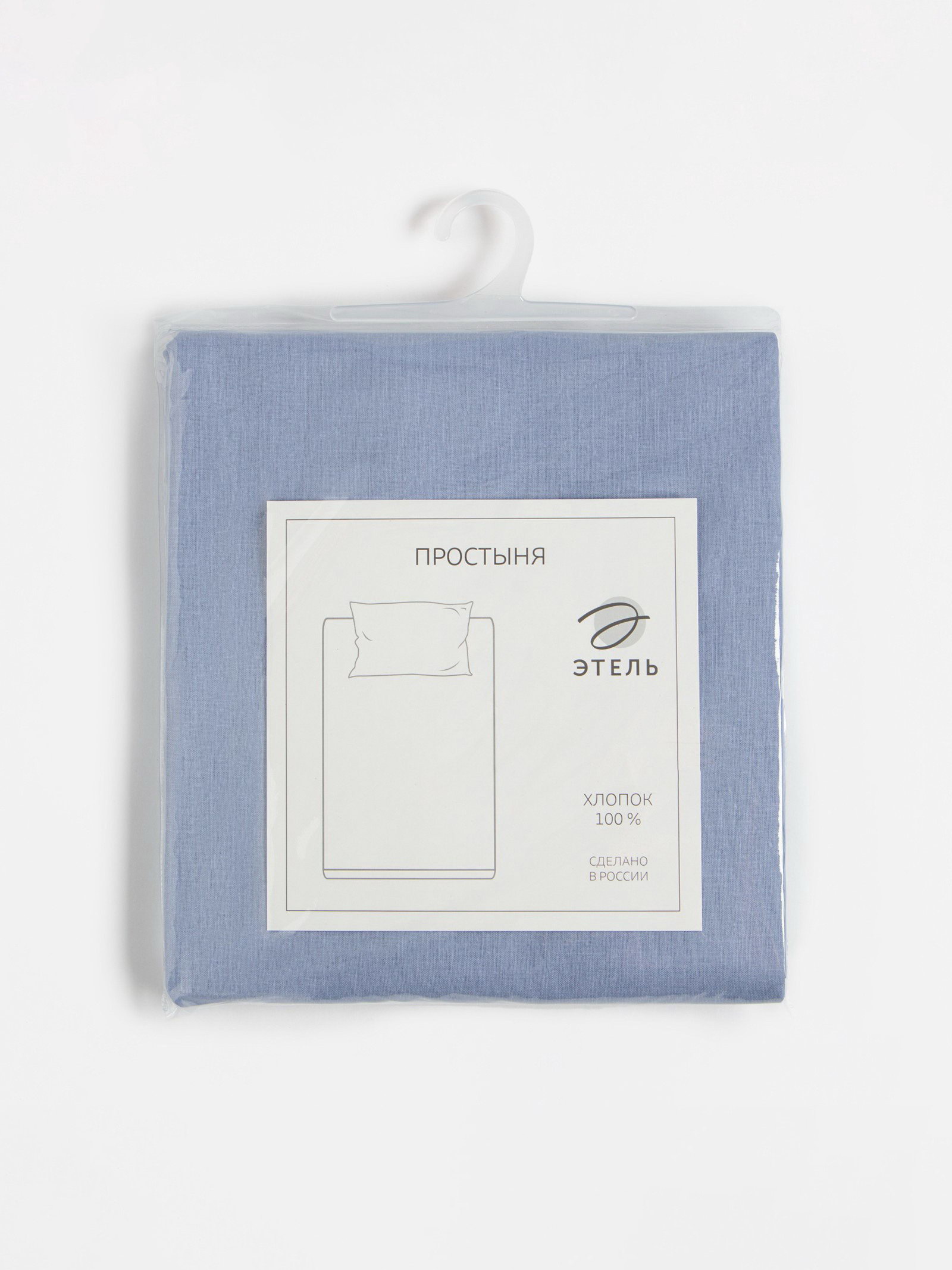 Простыня 2 спальная 200x215 см, голубая, хлопок 100%, поплин, 200x215 см., Этель, Россия