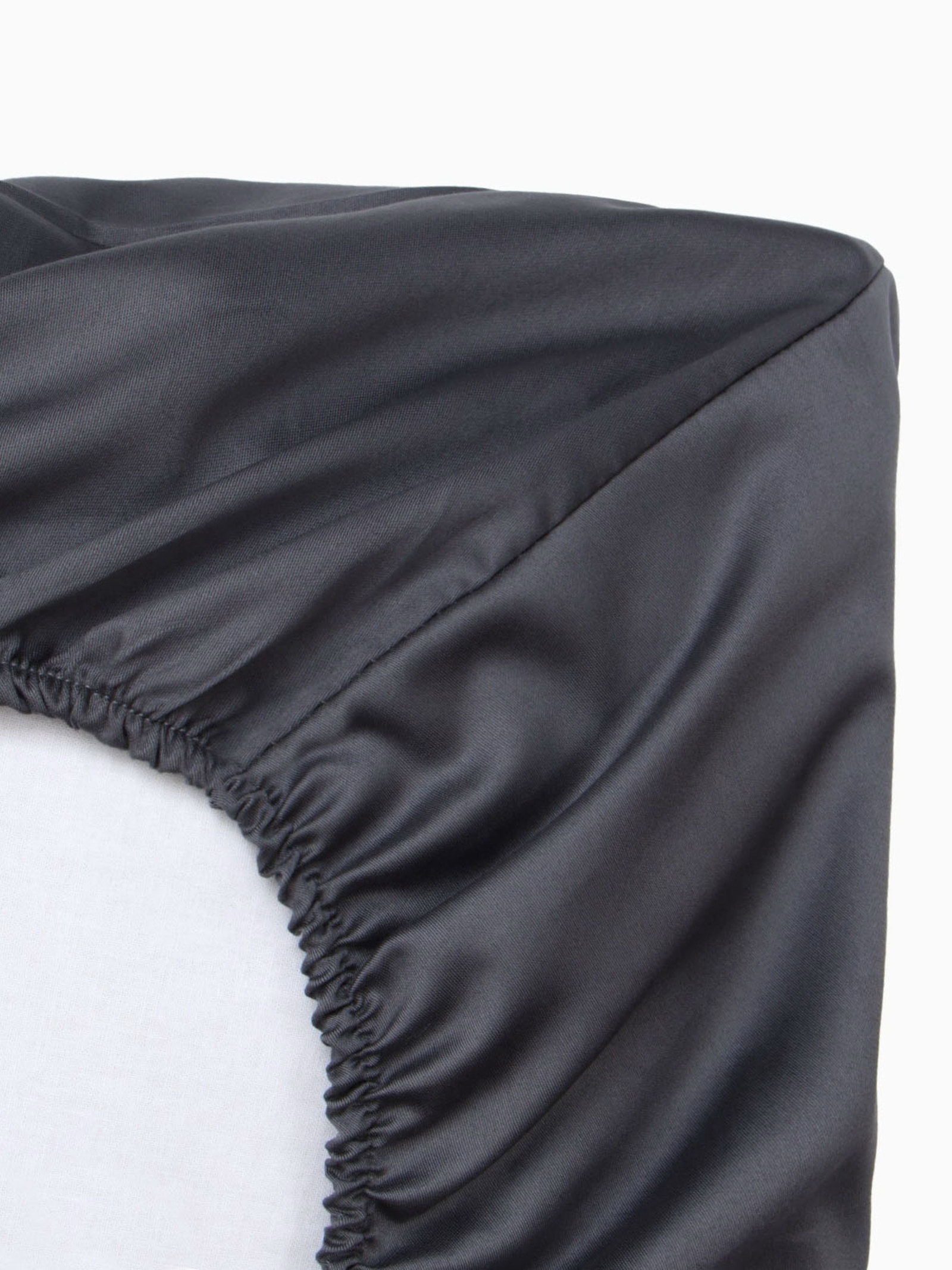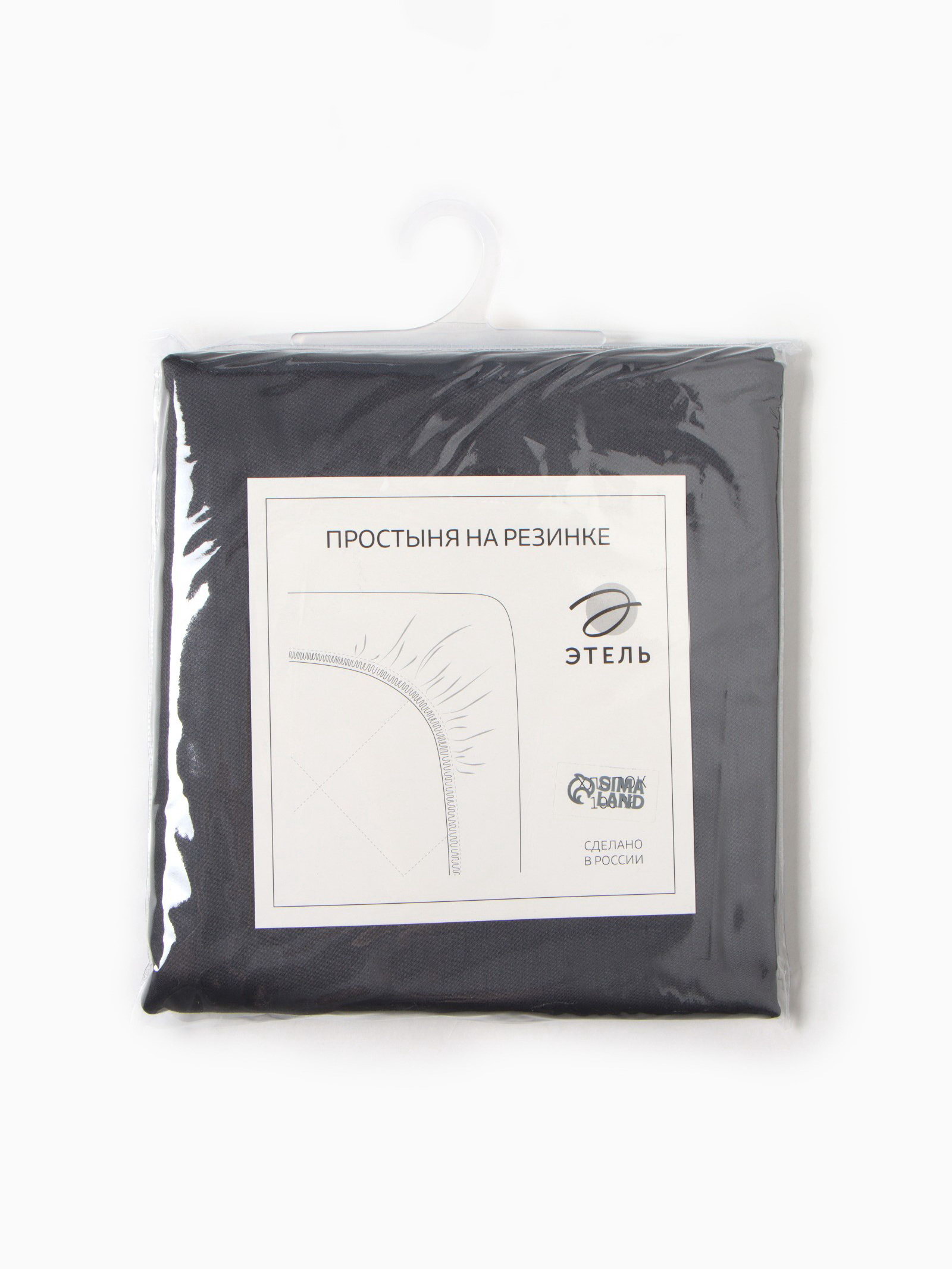 Простыня на резинке 2-спальная 160x200+25 см, тёмно-серая, мако-сатин, Этель, Россия