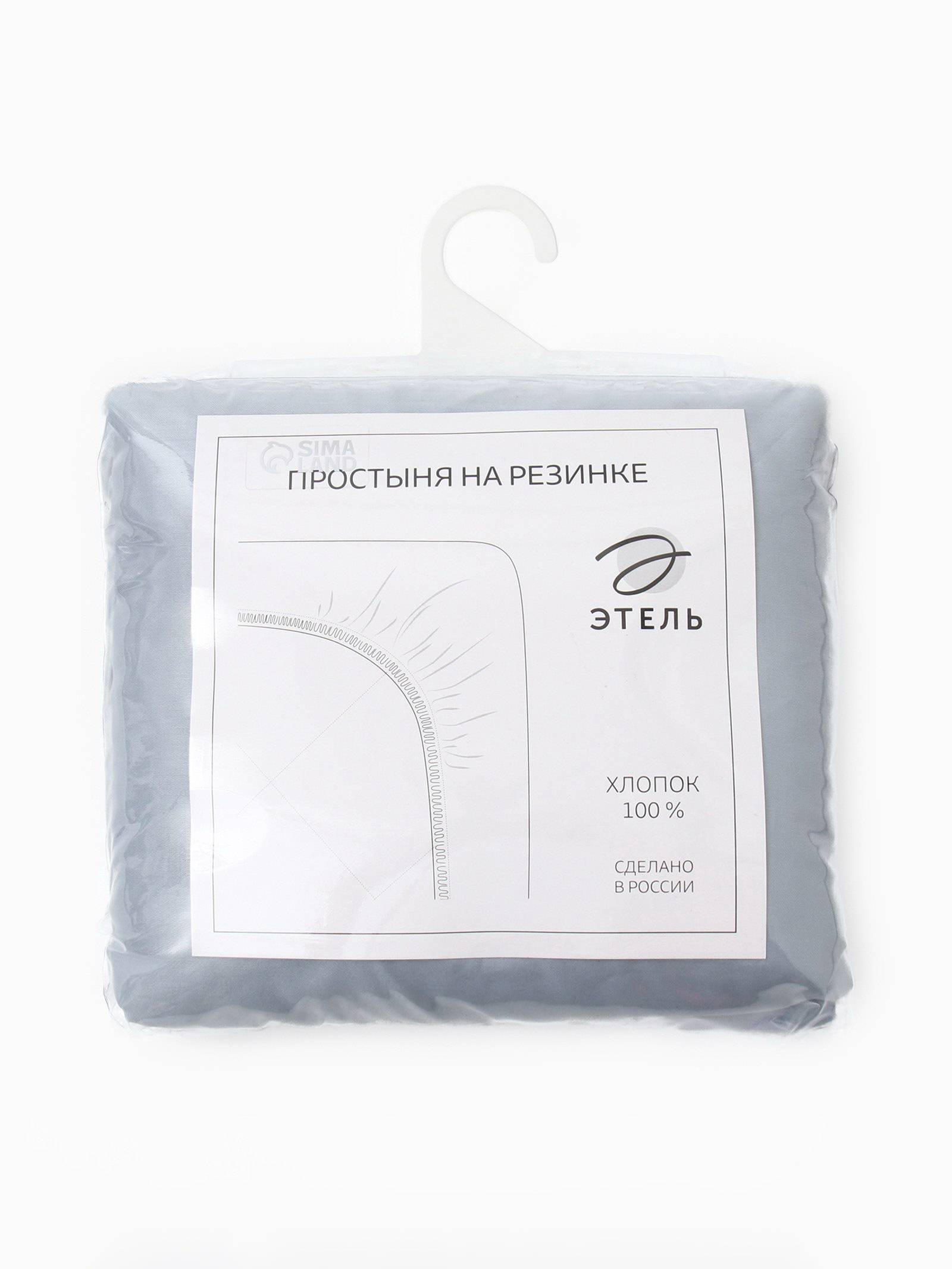 Простыня на резинке 2-спальная 160x200+30 см, голубая, сатин, 160x200 см., Этель, Россия