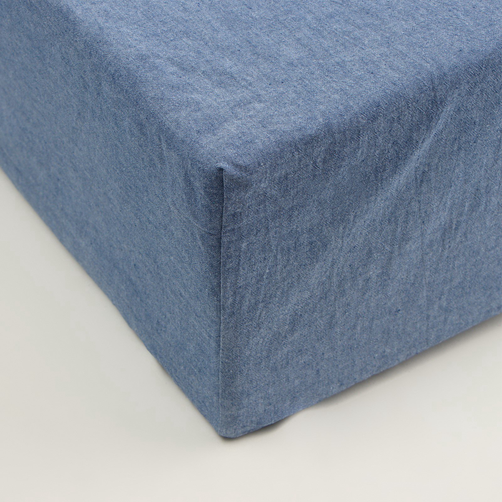 Простыня на резинке 1.5-спальная SL Home "Деним", 140x200+30 см, синяя, жатый хлопок, Sima-Land Home, Россия
