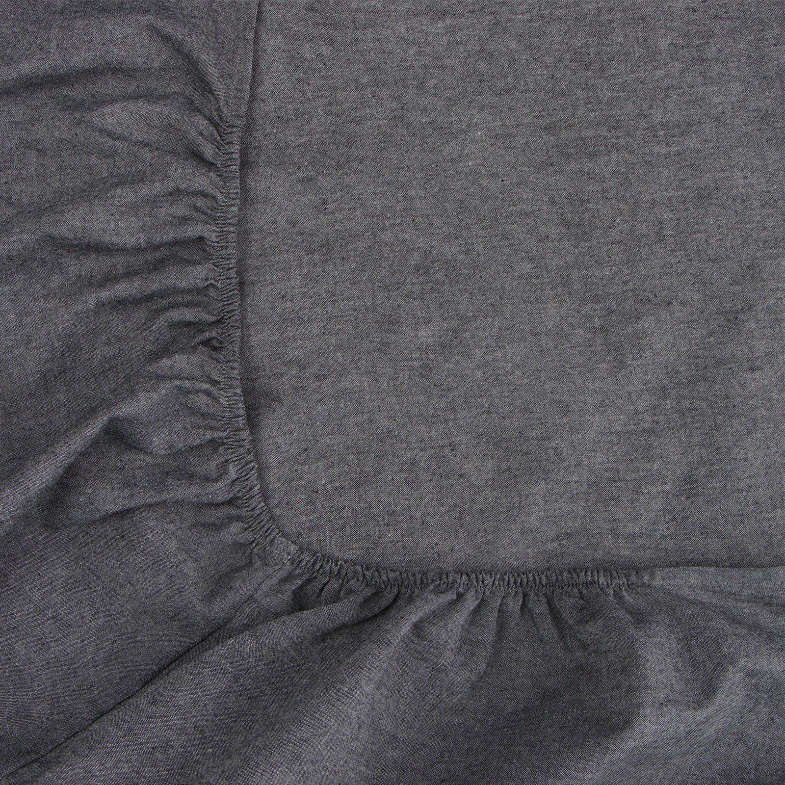 Простыня на резинке 2-спальная SL Home "Деним", 160x200+30 см, тёмно-серая, жатый хлопок, Sima-Land Home, Россия