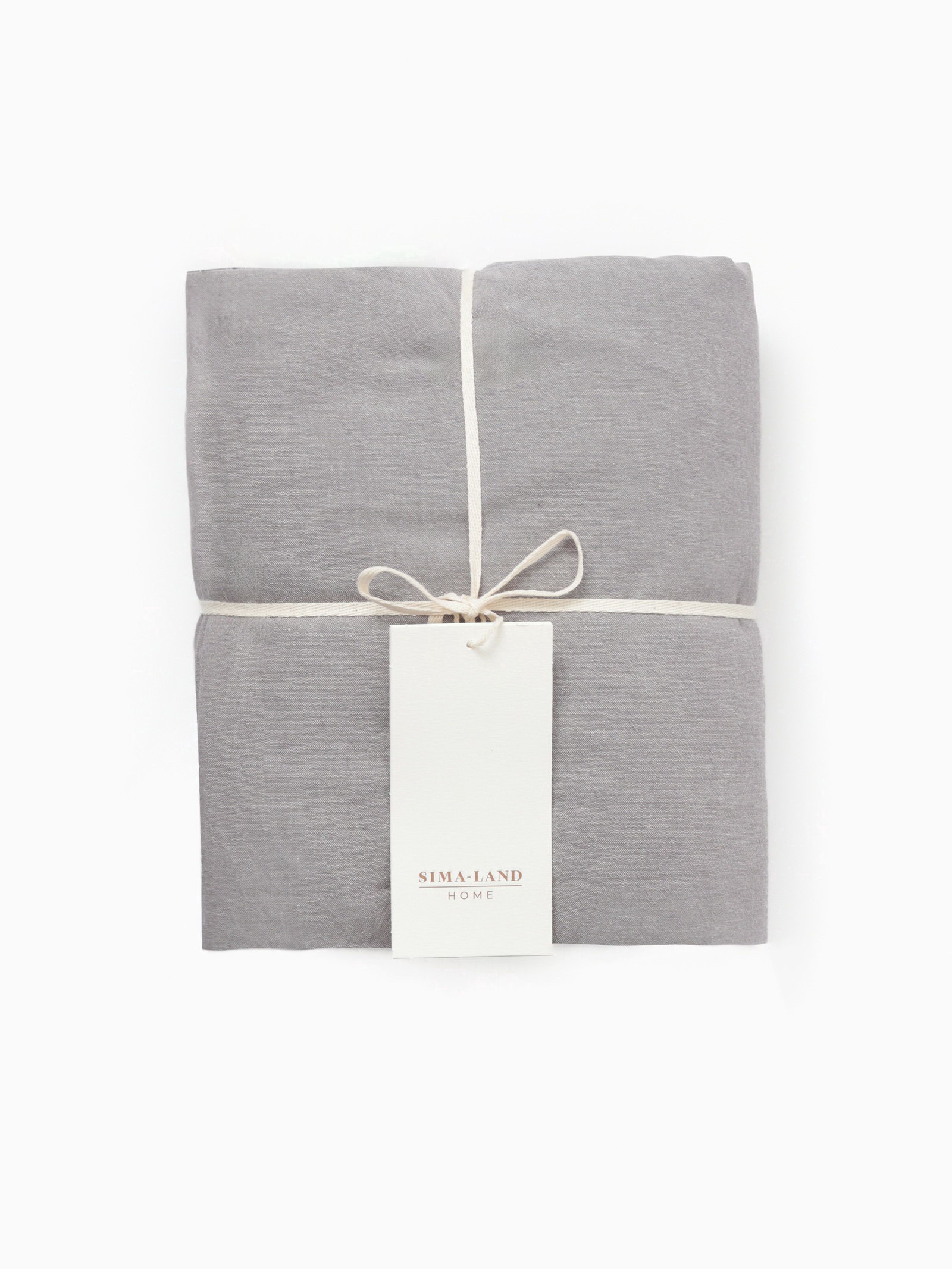 Простыня на резинке 2-спальная SL Home "Деним", 180x200+30 см, серая, жатый хлопок, Sima-Land Home, Россия