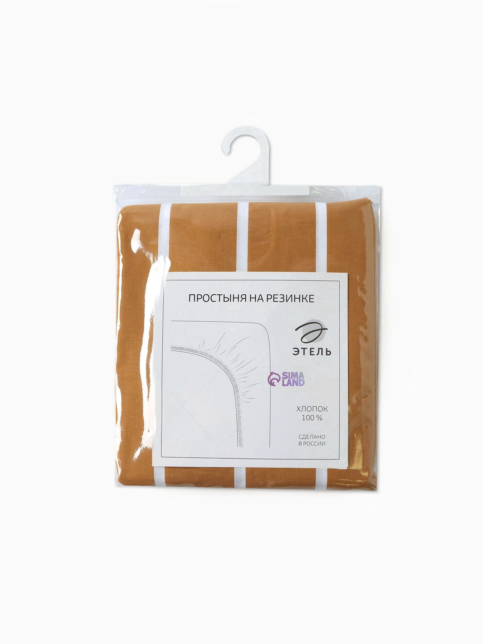 Простыня на резинке 2-спальная Mustard stripes, 180x200+25 см, поплин, 180x200 см., Этель, Россия