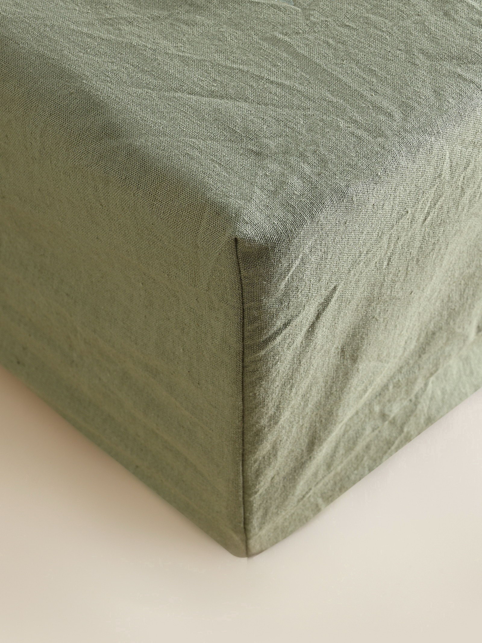 Простыня на резинке евро SL Home Linen collection, 200x200+30 см, зелёная, полулён, 200x200 см., Sima-Land Home, Россия