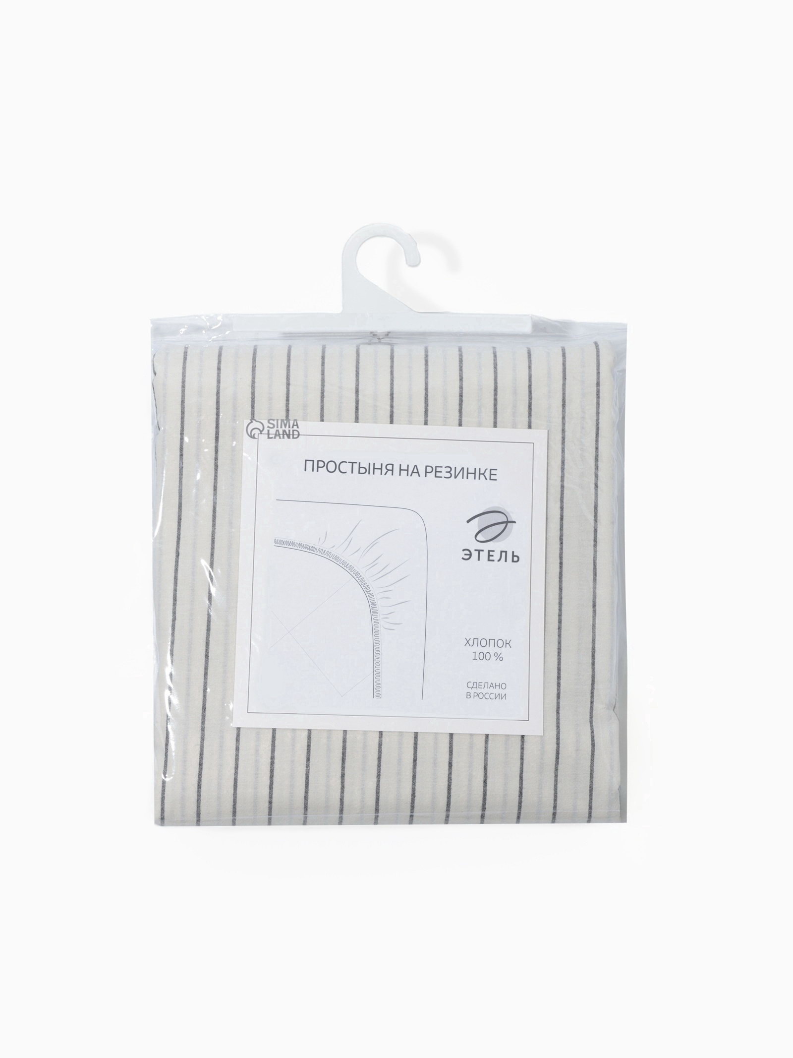 Простыня на резинке 1.5-спальная White stripes, 140x200+25 см, жатый хлопок, Этель, Россия