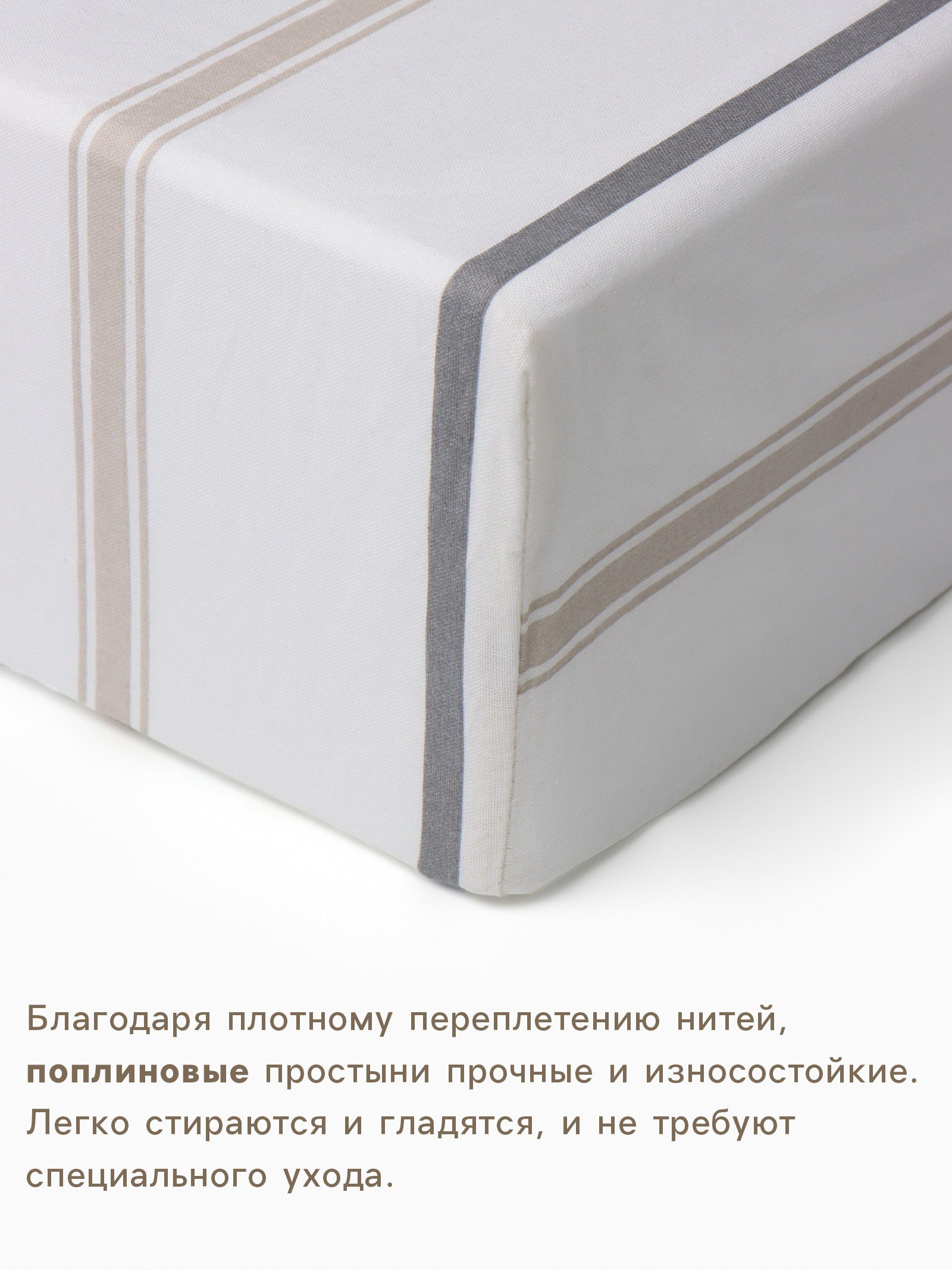 Рекомендации по уходу: Барабанная сушка при низкой температуре, Глажка при 150 ℃, Не отбеливать, Стирка при 40 ℃ Цвет: Бежевый, Белый, Серый Размер упаковки: 24 x 3 x 25 см. tnved: 6302210000 Честный знак: Да Температурное ограничение: Нет Размер: 2-спальное см Размер простыни, см: 160 x 200 Вид упаковки: PVC-пакет Ткань: Поплин Декоративные элементы: Без элементов Тематика: Полоски, полоса Фактура материала: Гладкий Состав ткани: Хлопок На резинке: Да Плотность, г/?2: 125 | ||