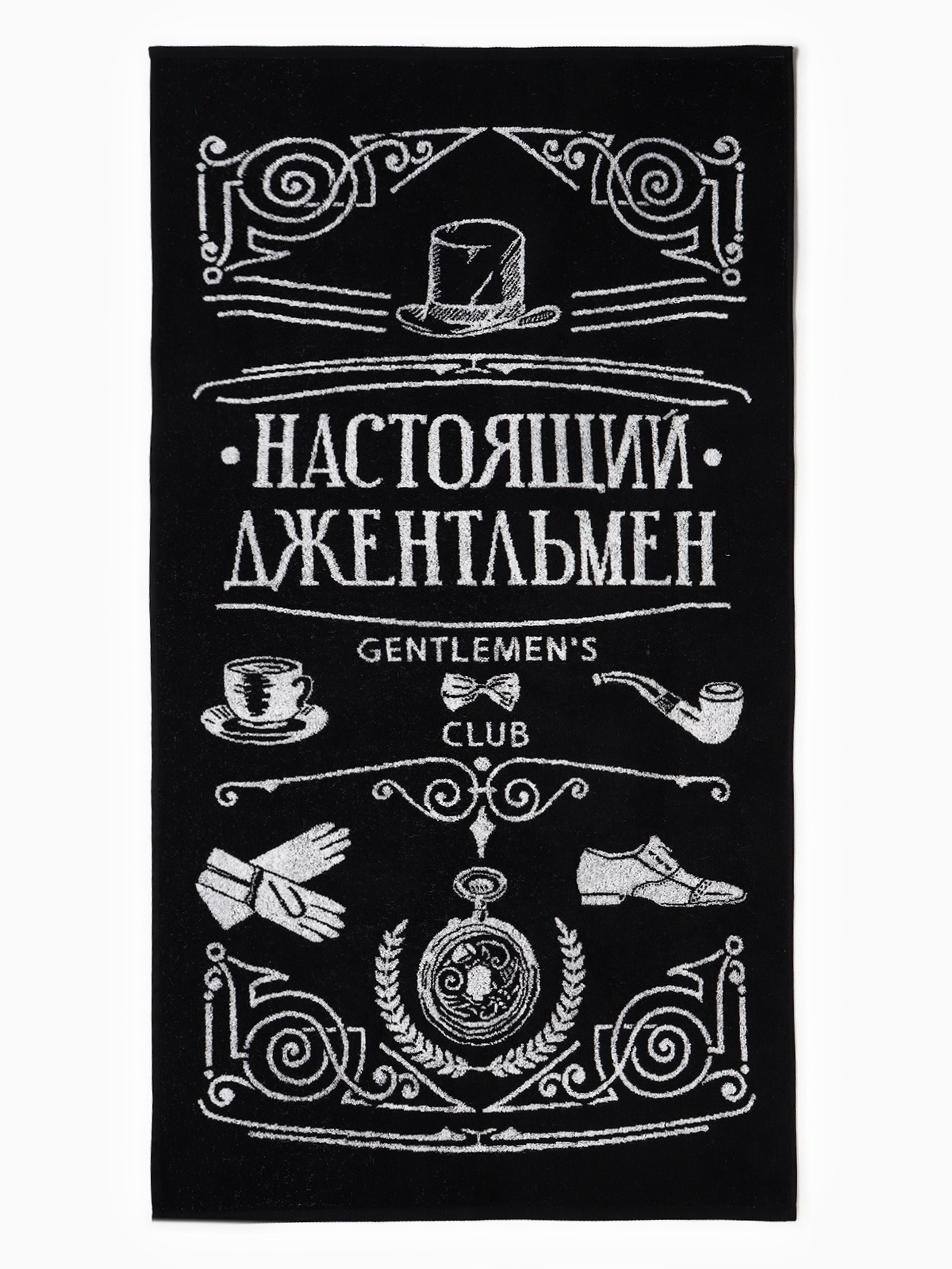 Полотенце махровое "Настоящий джентльмен", 70x130 см, 100% хлопок, 420 г/?2, чёрно-белое, 70x130 см., Этель, Россия