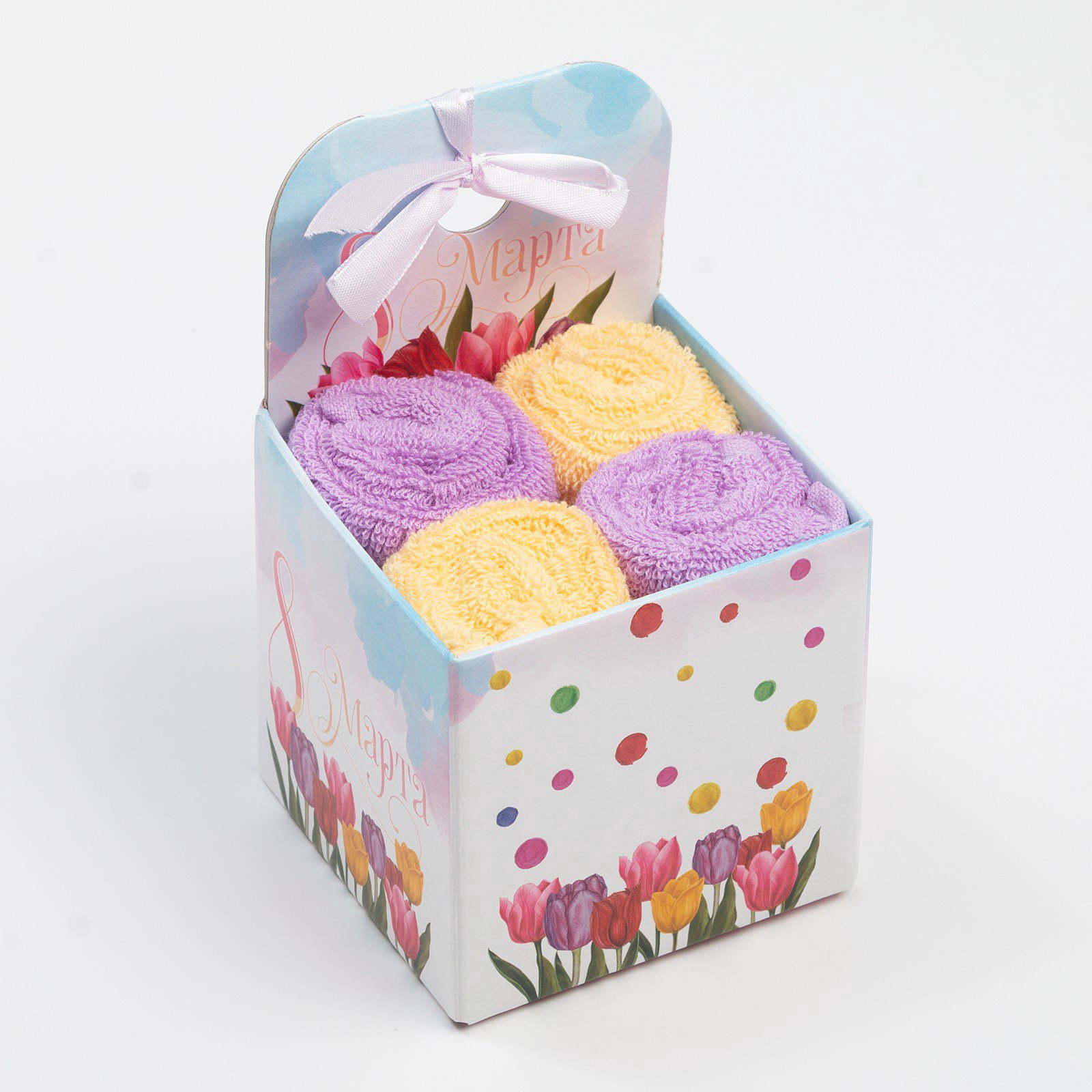 Салфетки махровые "Этель. С 8 Марта", 4 шт., 30x30 см, 100% хлопок, фиолетовые/жёлтые, Этель, Россия