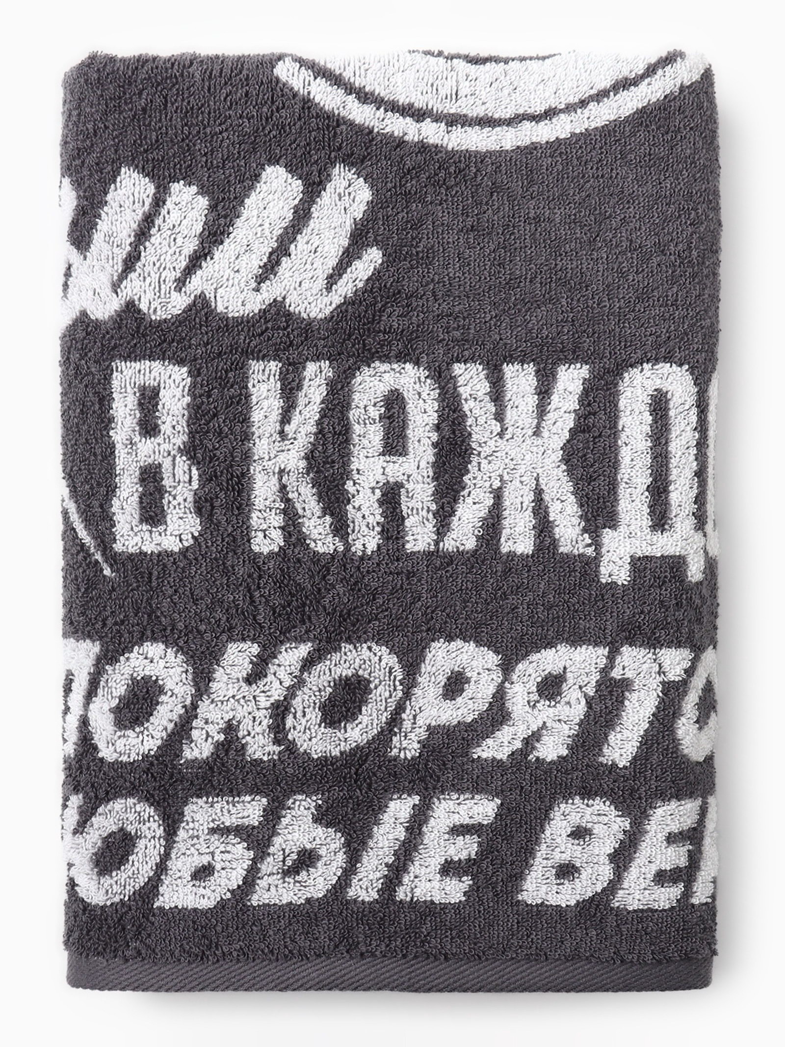 Полотенце махровое "Больших побед", 70x130 см, 100% хлопок, 420 г/?2, серое, Этель, Россия