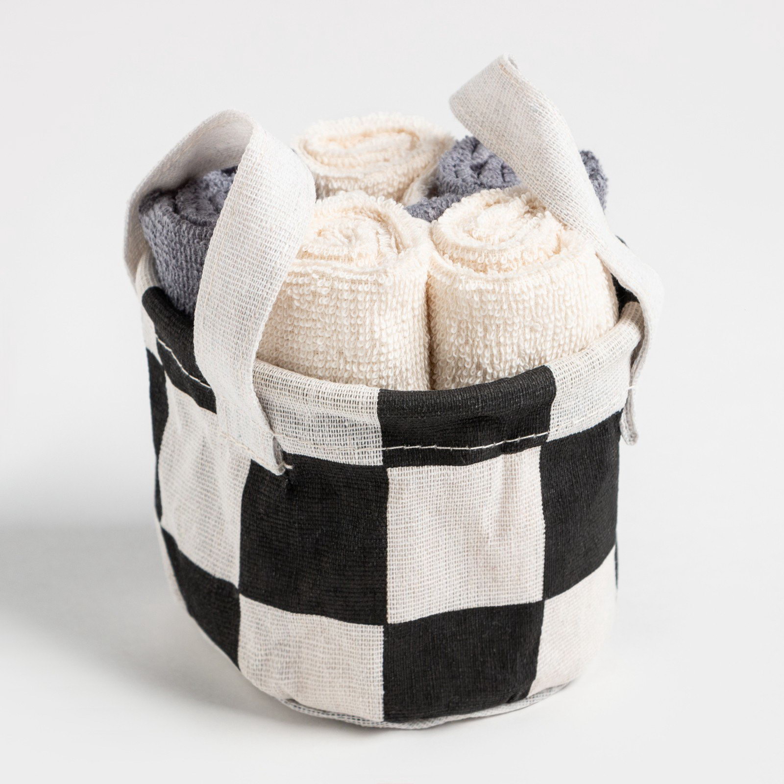 Салфетки махровые универсальных в корзинке "Этель. Клетка", 30x30 см - 5 шт., хлопок 100%, Этель, Россия
