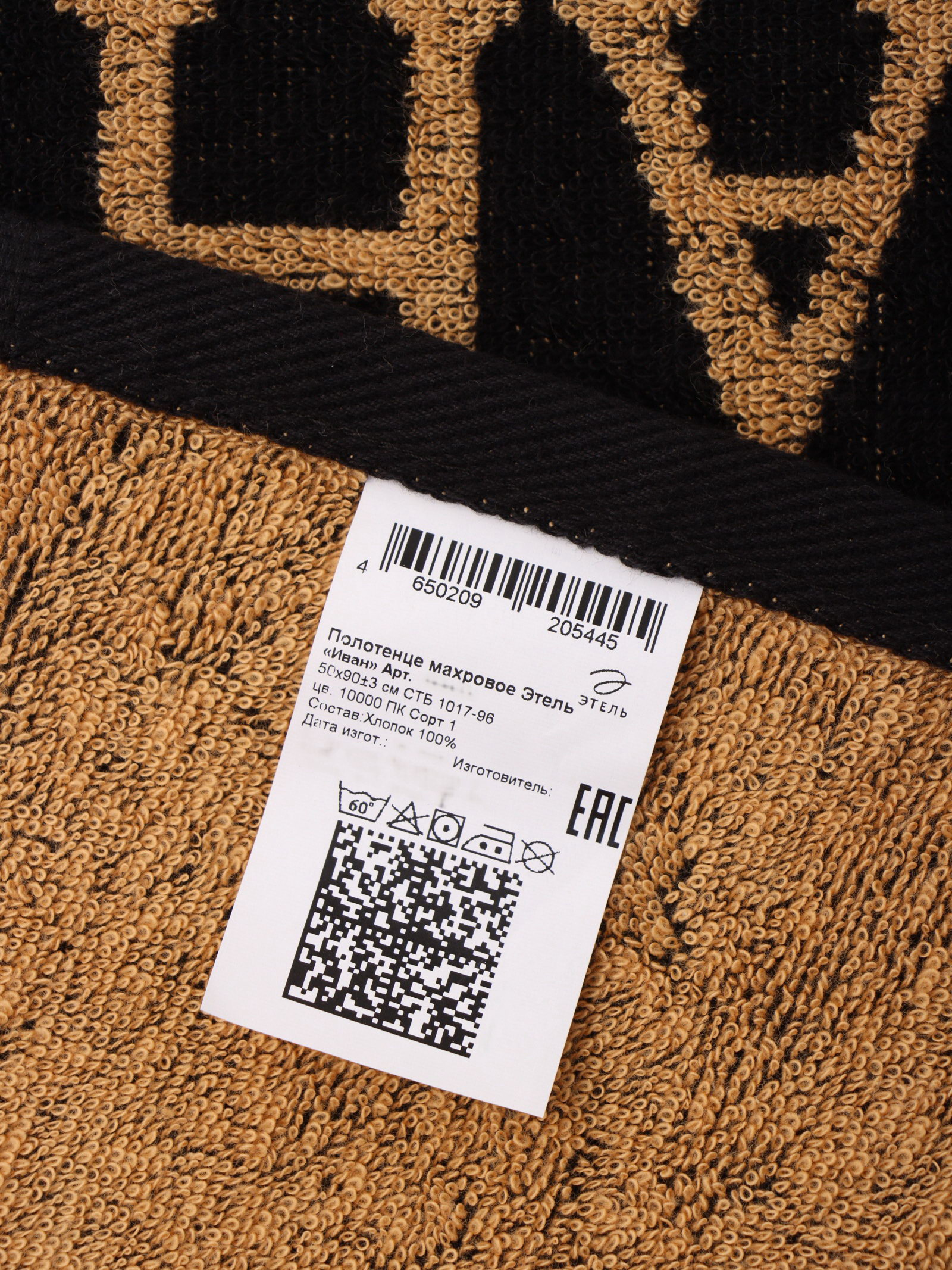 Полотенце махровое "Этель. Иван", 50x90 см, 100% хлопок, 420 г/?2, чёрное, Этель, Россия
