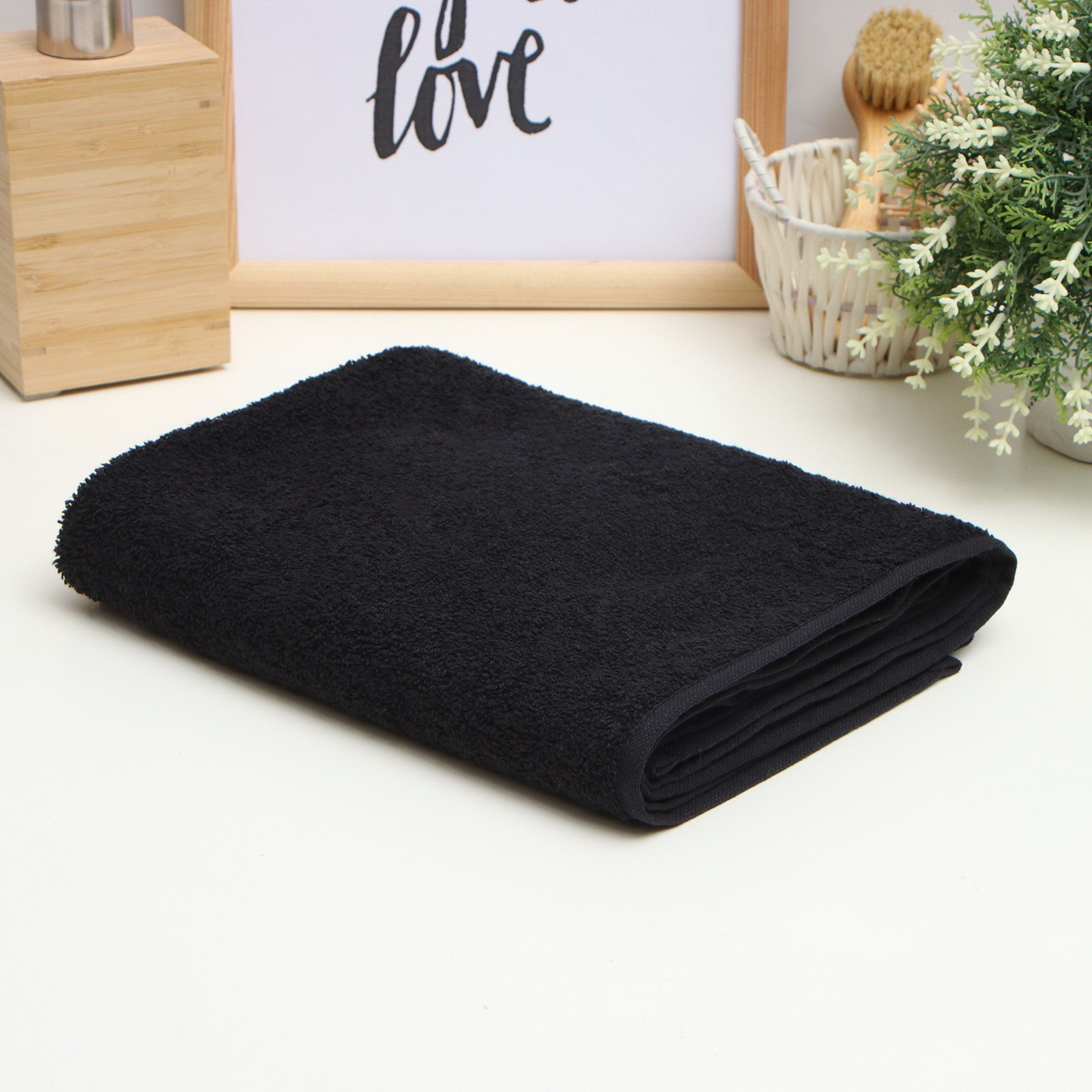 Полотенце махровое "Терри" 50*90 см, цв. черный, 100% хлопок, 430 г/м2, Этель, Узбекистан