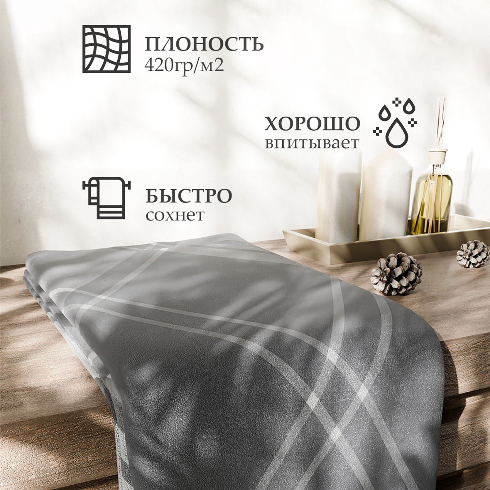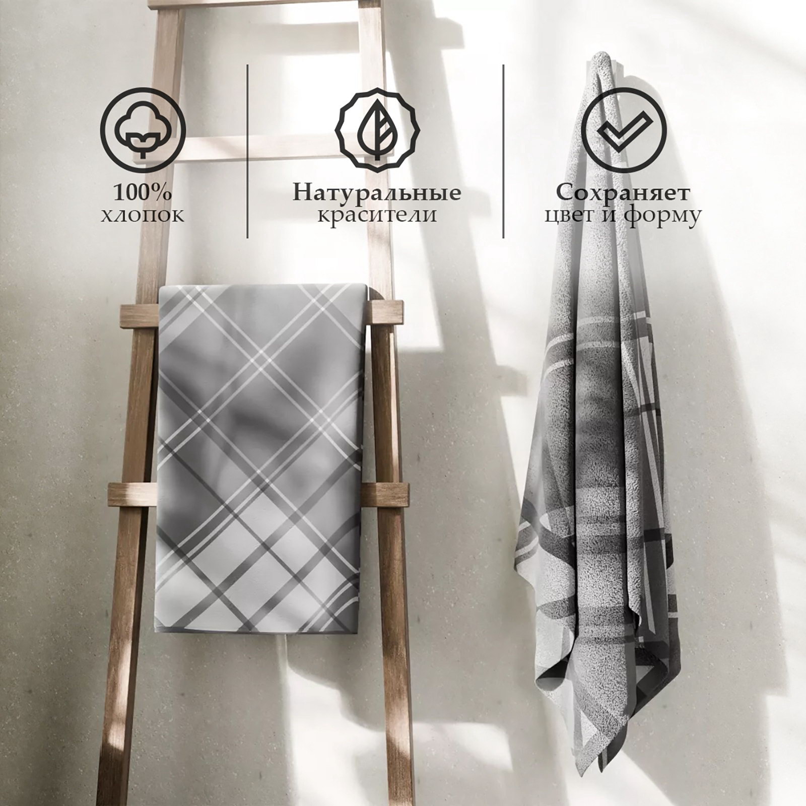 Полотенце махровое "Этель. Клетка", 50x90 см, хлопок 100%, серое, Этель, Россия