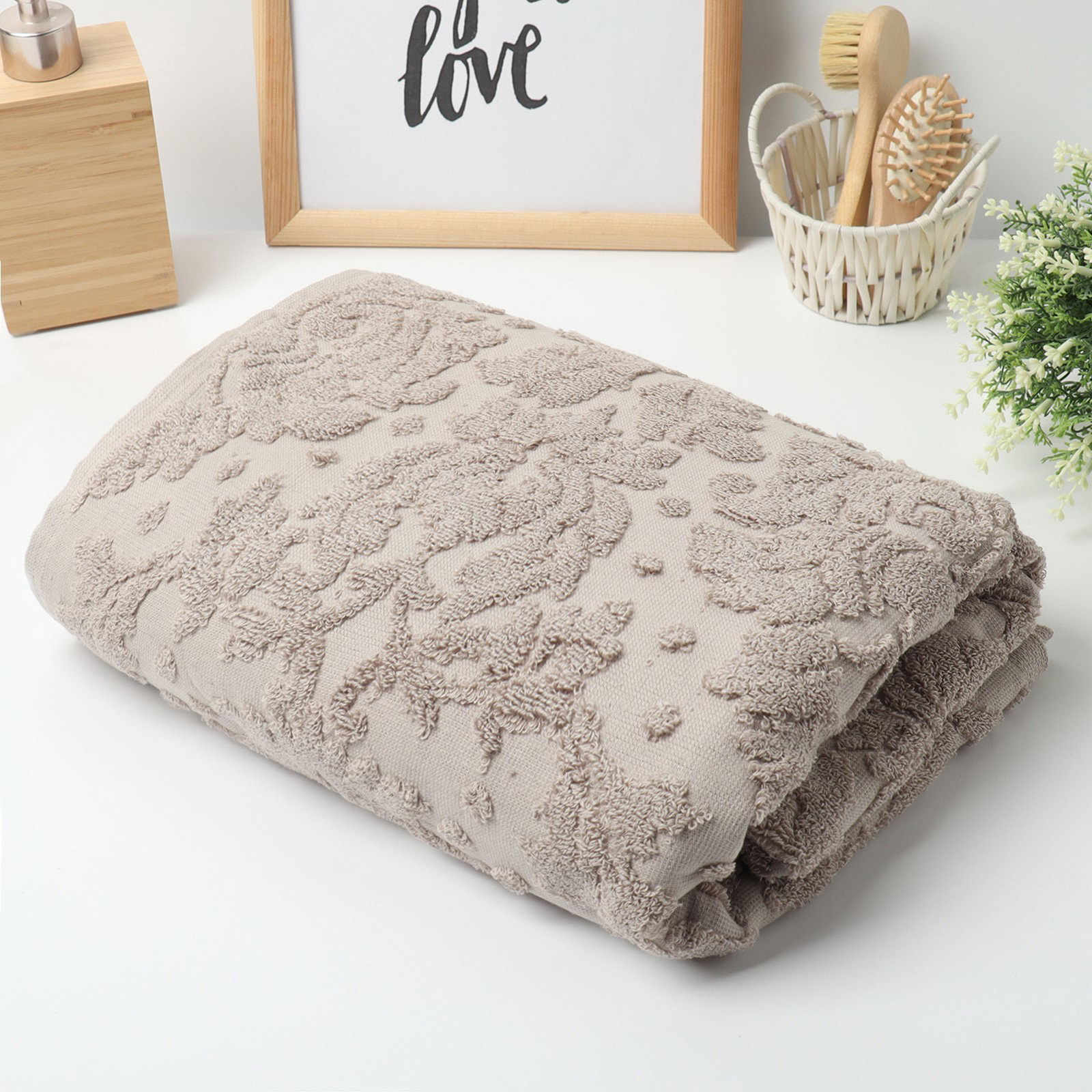 Состав ткани: Лён, Хлопок Размер упаковки: 24 x 6 x 28 см. Температурное ограничение: Нет Честный знак: Да Назначение полотенец: Для тела, банное Набор: Нет Ткань: Махра Цвет: Бежевый Размер, см: 67 x 140 Плотность, г/?2: 500 В подарочной упаковке: Нет Декоративные элементы: Вышивка Фактура материала: Ворсистый Вид упаковки: Пакет Рекомендации по уходу: Деликатная стирка при 40 ℃ Особенности: Жаккард Тематика: Однотонная Тематика: Однотонная tnved: 6302510000 | ||
