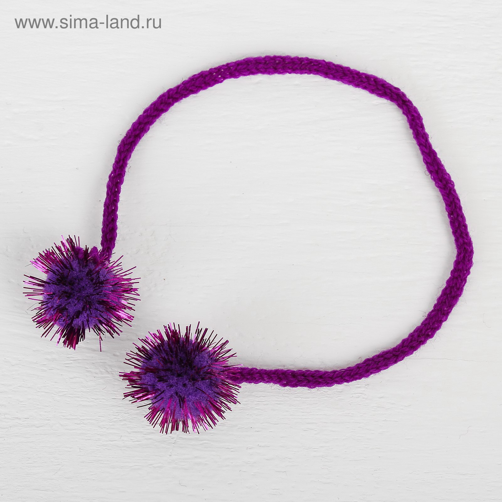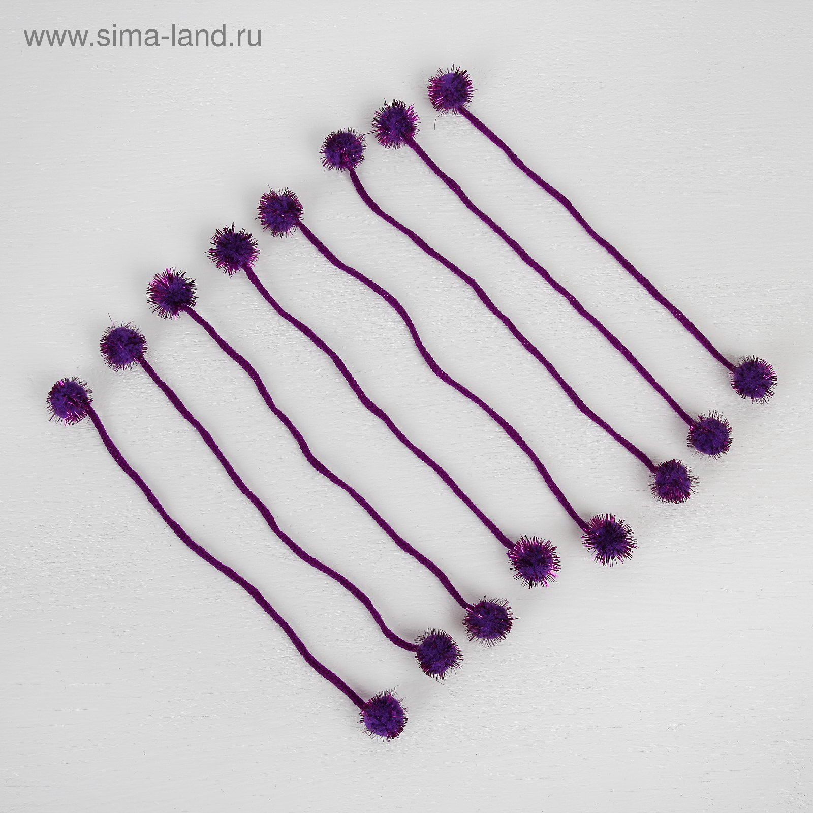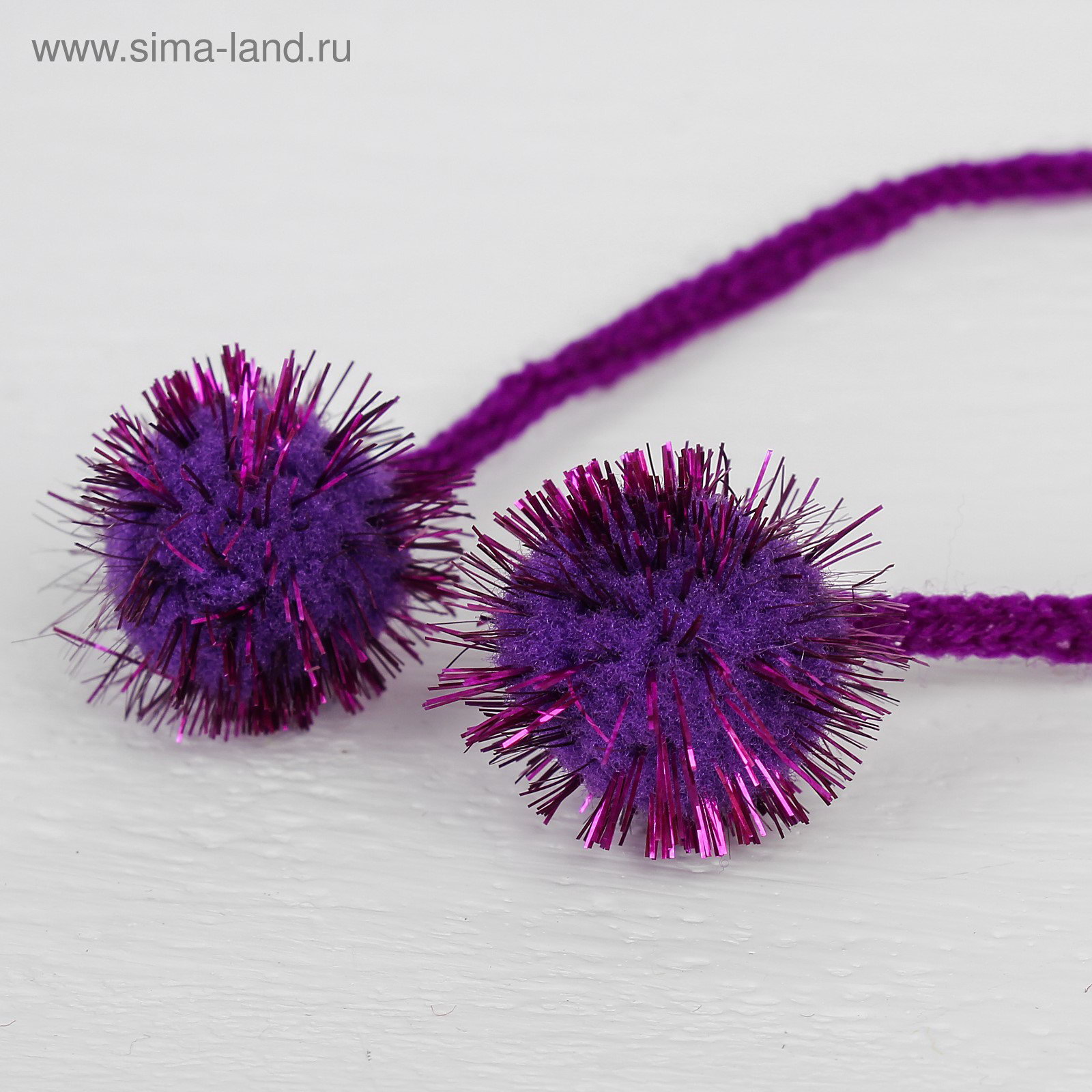 Декоративный элемент на верёвочке 2 шарика с блеском, d= 2 см, набор 8 шт., цвет фиолетовый, 10x2x10 см., Китай